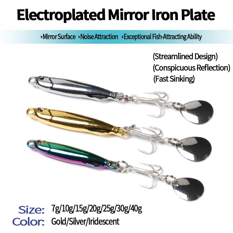 1.Superficie del espejo: el señuelo presenta una superficie similar a un espejo que refleja la luz, lo que lo hace muy visible para los peces desde todos los ángulos.