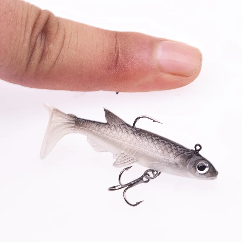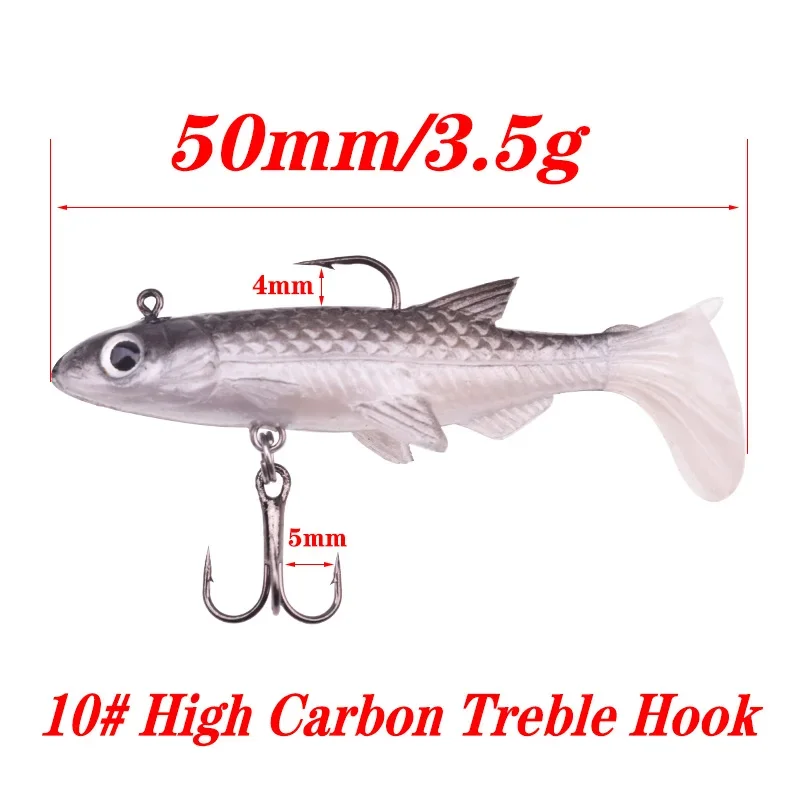 1 Uds. Cebo suave de silicona Minnow pequeño 50mm 3.5g Jig Wobblers Shad cuchara señuelo de pesca Leurre Artificial con ganchos Bass carpa Pesca