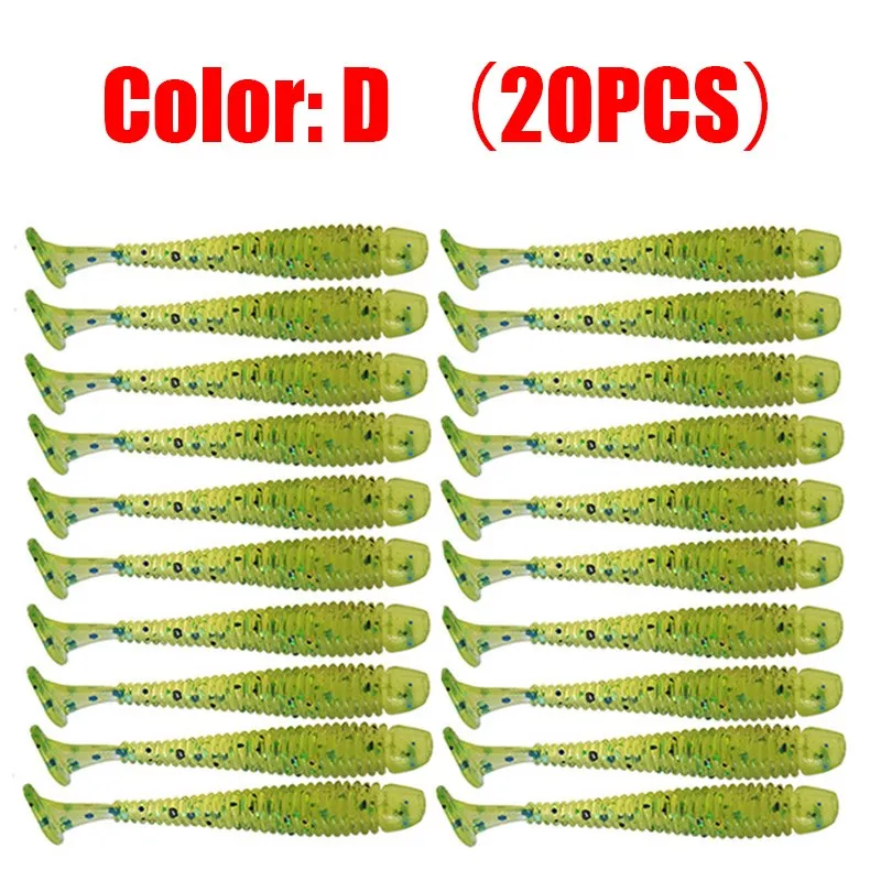 20 unids/lote de cebos blandos para pesca Jigging Wobblers, 5cm, 0,7g, señuelos de gusano en espiral, Swimbaits Artificial de silicona, aparejos de Pesca de carpa baja