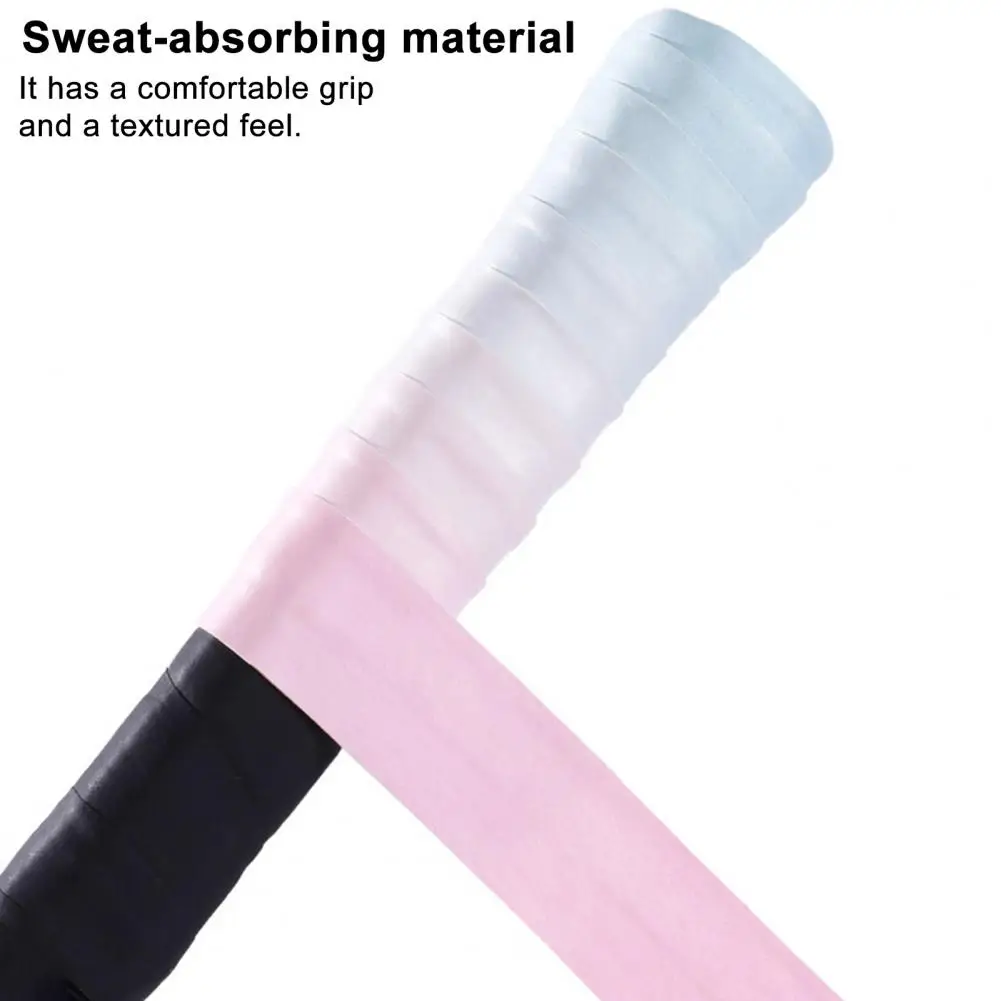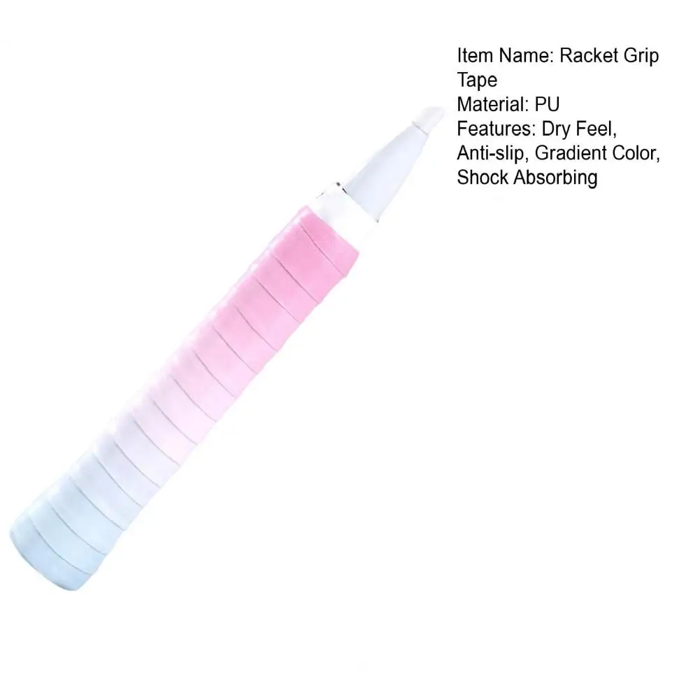 Available in stylish gradient colors, our racket grip tape adds a touch of flair to your racket, making it stand out on the court. Crafted from sweat-absorbing PU material, it provides a comfortable and textured surface for a secure hold.
