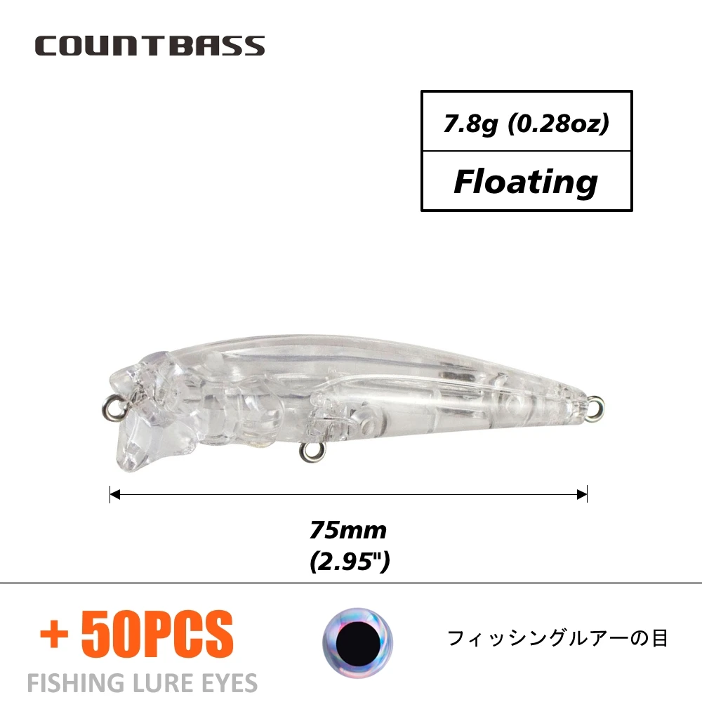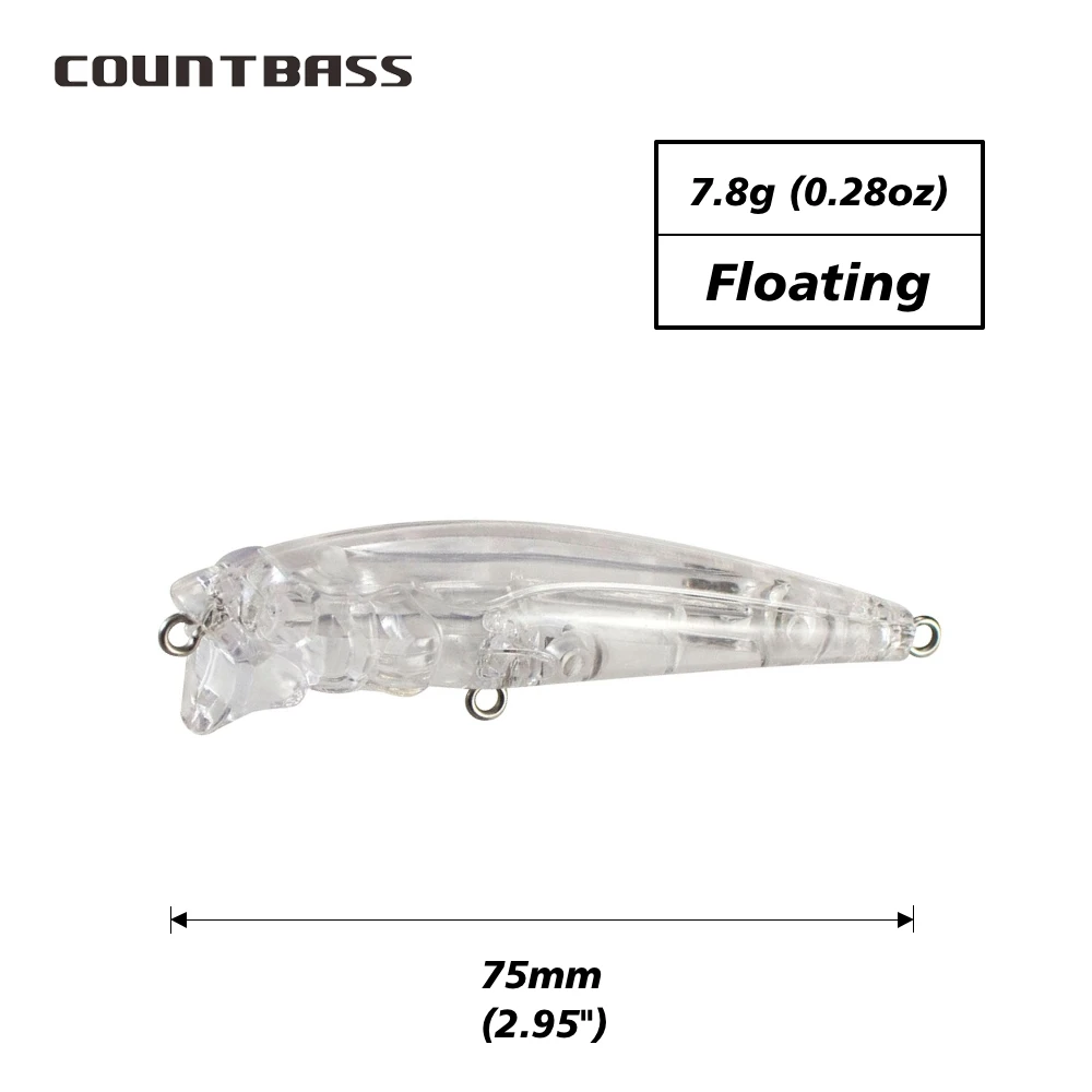 Countbass 10 Uds. Señuelos duros en blanco, 75mm/3 "8g/0,28oz Popper flotante, pececillo, cebos de pesca sin pintar, Wobblers, cebos duros en blanco