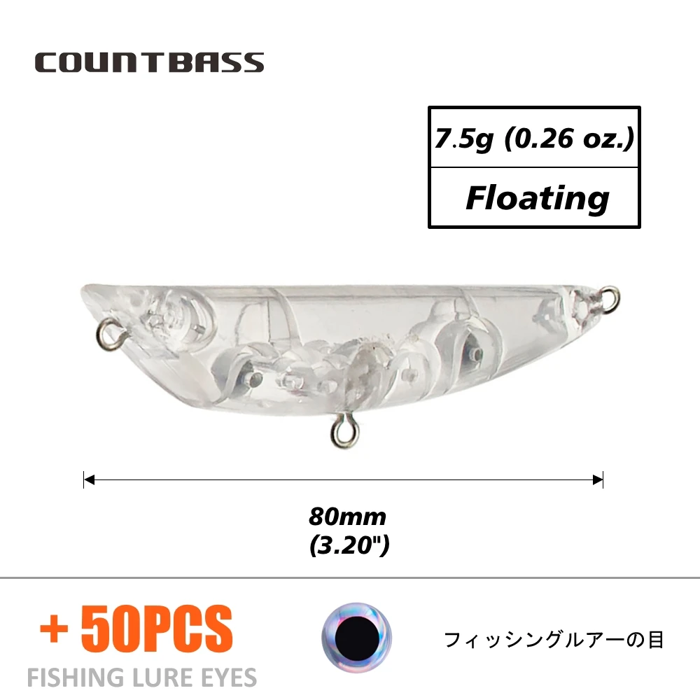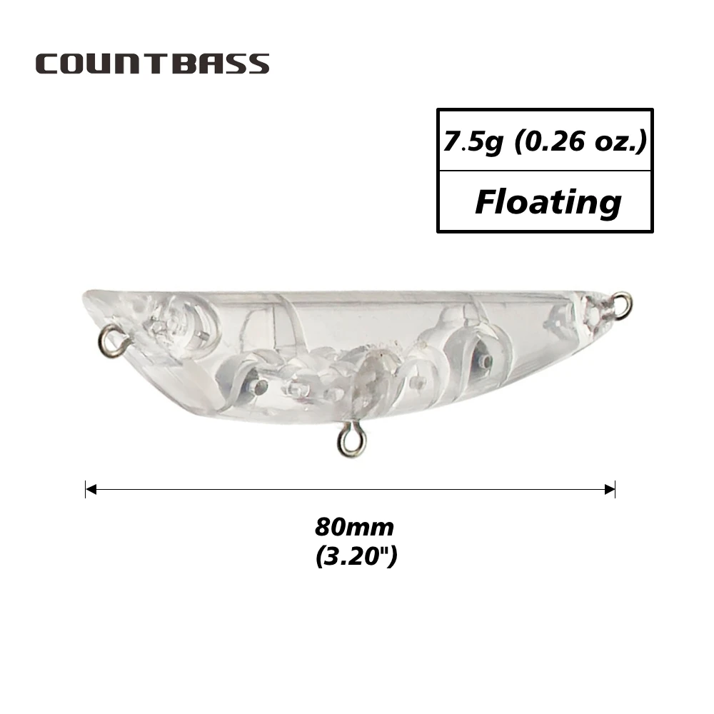 Countbass 10 Uds. Señuelos duros flotantes en blanco, Topwater 80mm/3,2 "7,5g/0,26oz cebos de pesca sin pintar, Wobbler para lubina Walleye