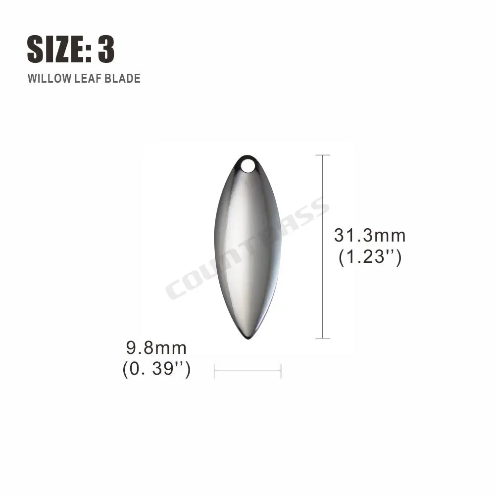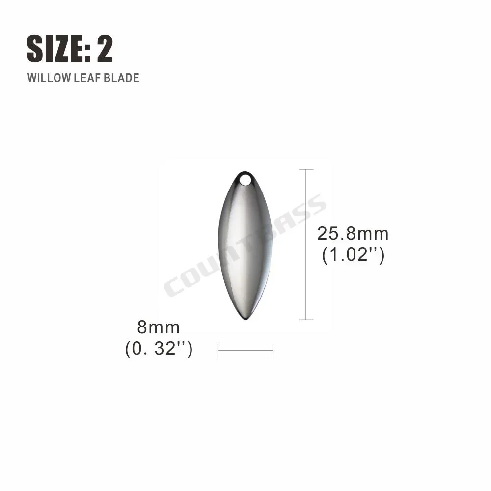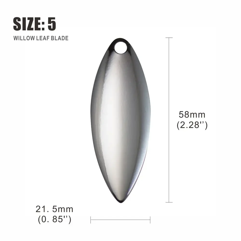 ¡Las hojas de sauowleaf son asesinos de spinnerbaits!Increíble en los trolls de las pandillas.La hoja de hoja de sauce es imprescindible para todos los pescadores serios.Las hojas de hoja de sauce maximizan el destello y minimizan la vibración del señuelo, y levantan las creaciones del señuelo mientras nada por el agua.