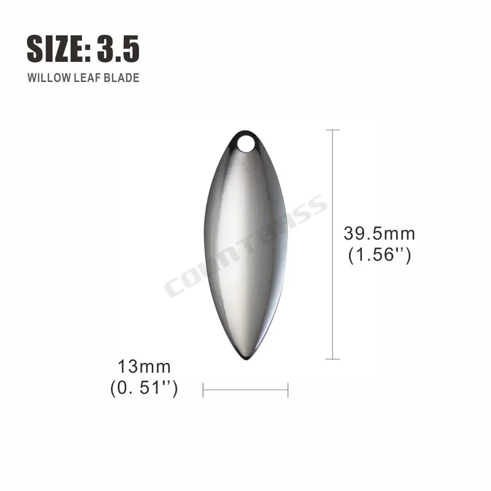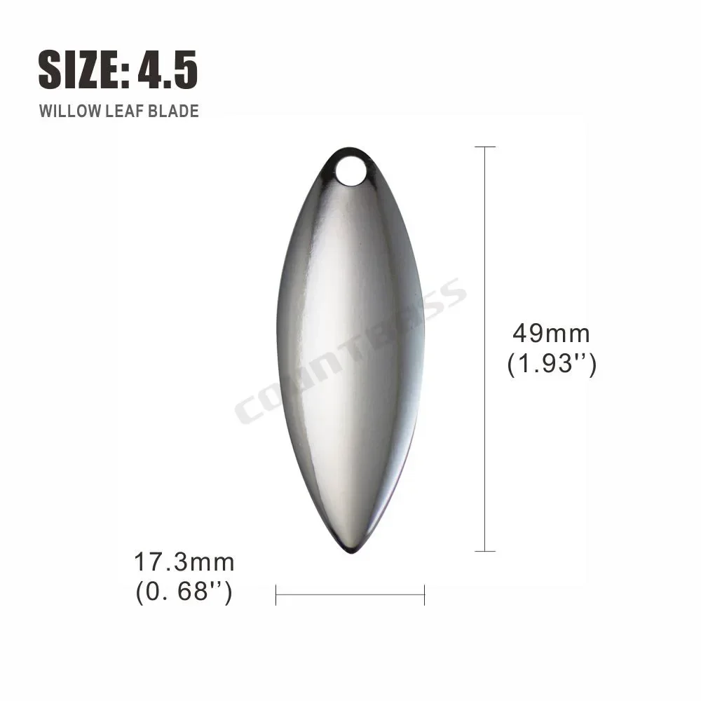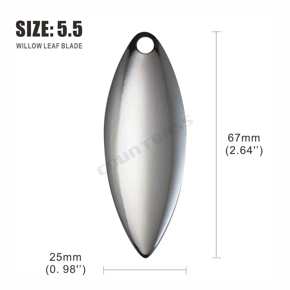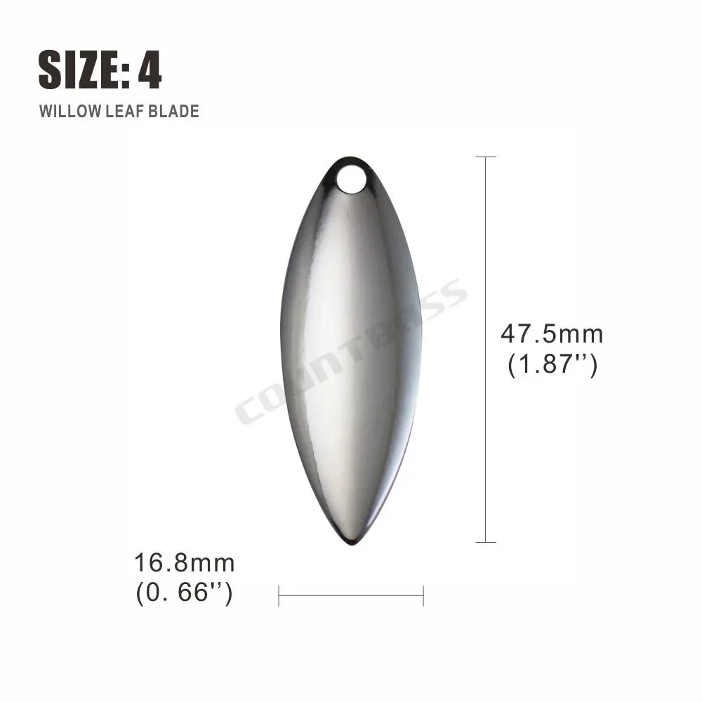 ¡Las hojas de sauowleaf son asesinos de spinnerbaits!Increíble en los trolls de las pandillas.La hoja de hoja de sauce es imprescindible para todos los pescadores serios.Las hojas de hoja de sauce maximizan el destello y minimizan la vibración del señuelo, y levantan las creaciones del señuelo mientras nada por el agua.