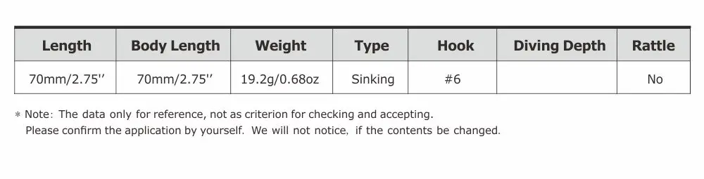 Countbass Crankbait sin labios 70 mm 2-3/4" 19,2 g 43/64 oz. Señuelos de pe...