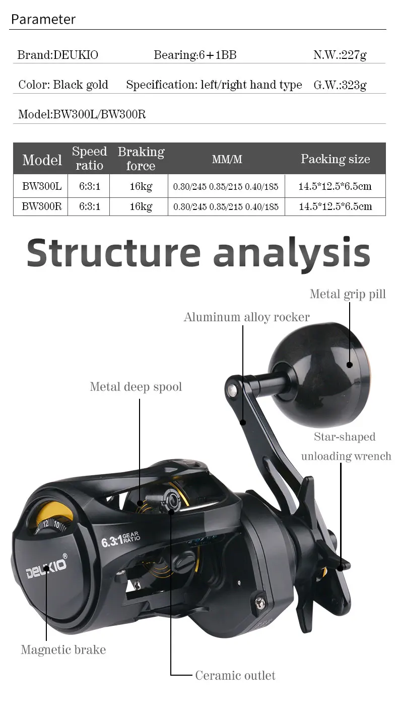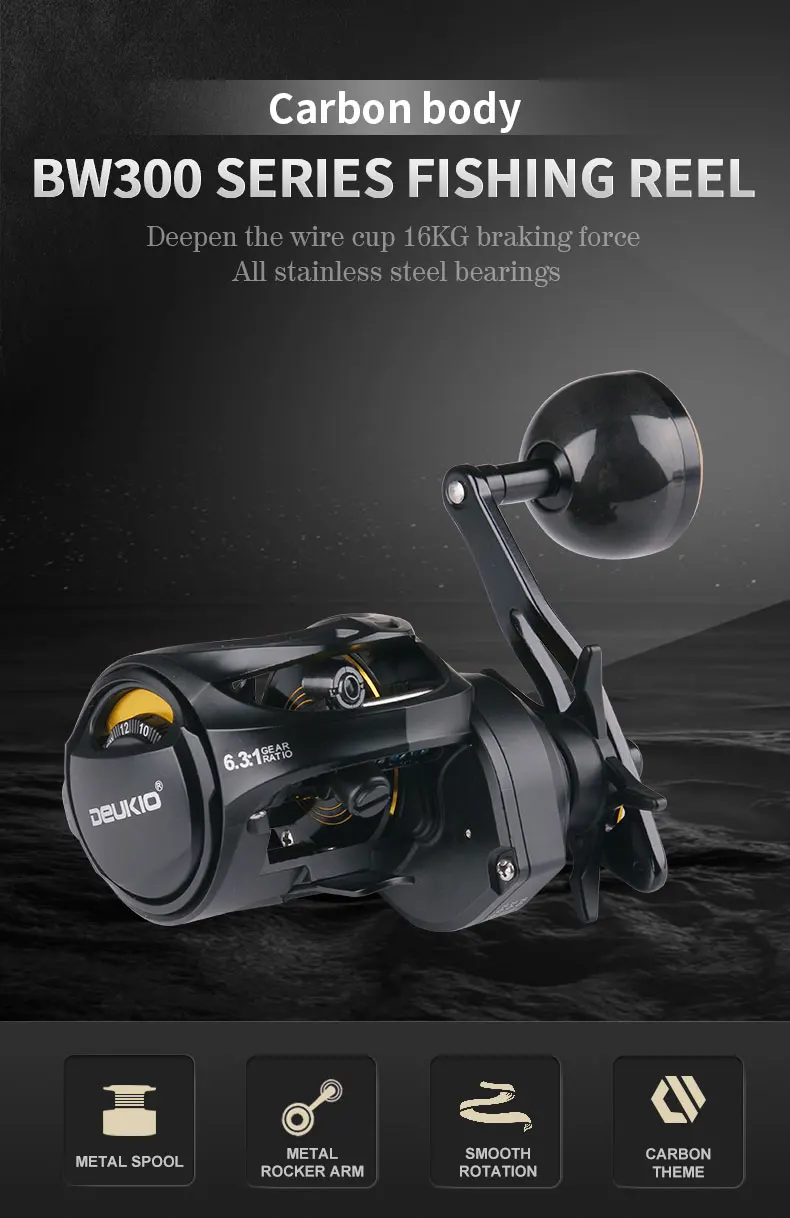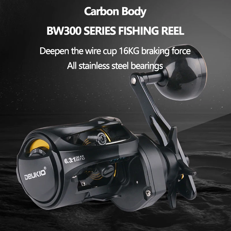 Carbono BodCARRETE DE PESCA SERIE BW300Profundizar la copa de alambre 16KG fuerza de frenadoTodos los rodamientos de acero inoxidable