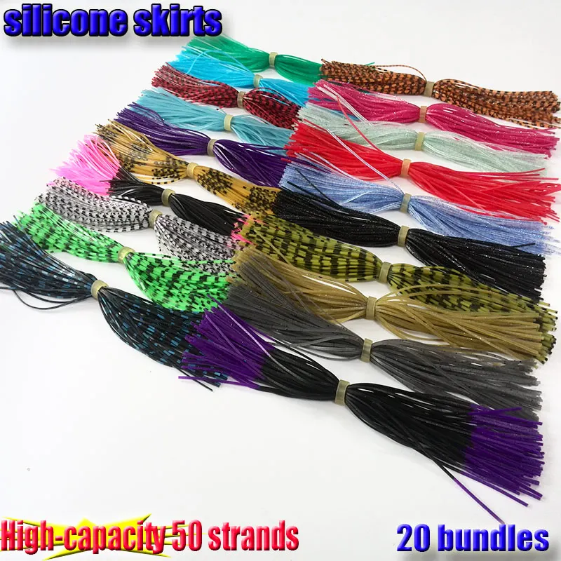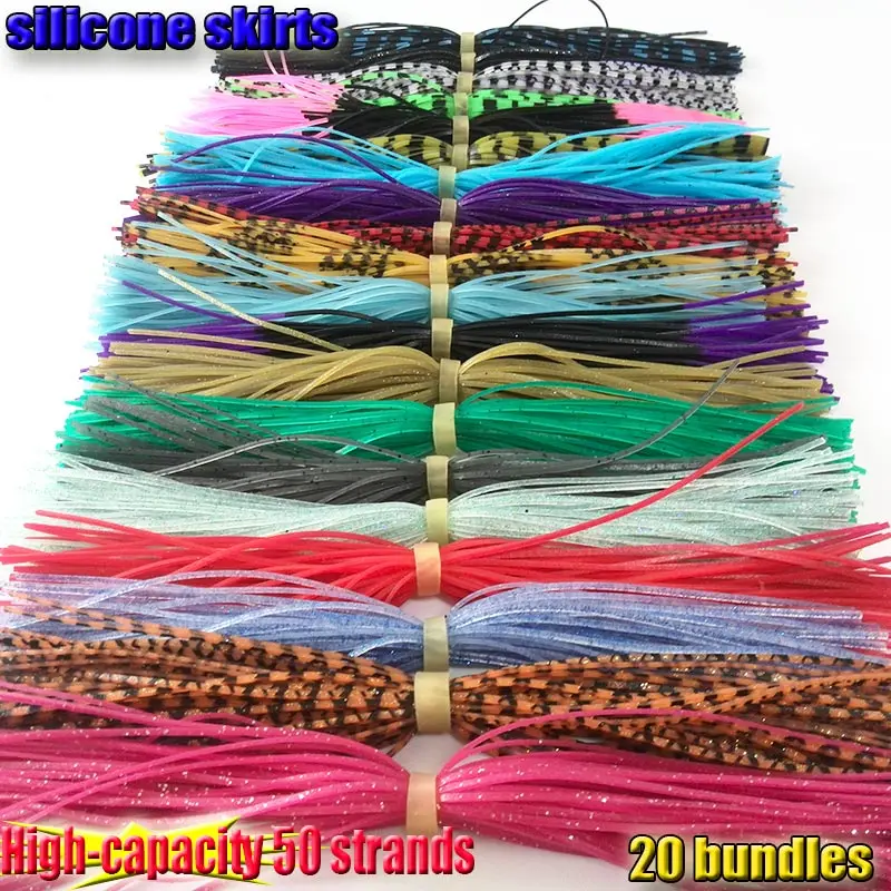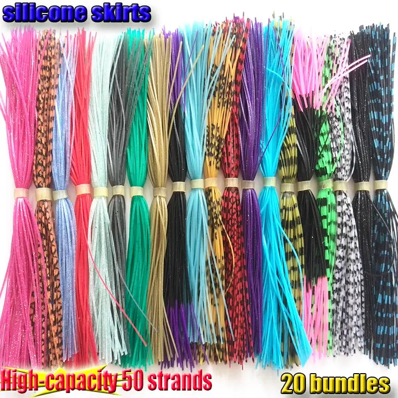 Faldas de silicona de gran capacidad, accesorios de pesca, señuelos de plantilla, falda de goma de calamar, 50 hebras, 20 tipos, 2023