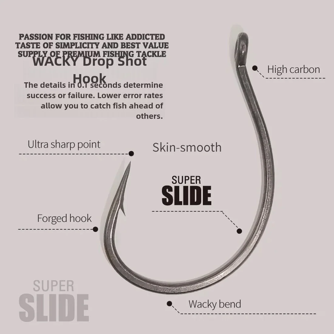 Los anzuelos de pesca Drop Shot están hechos de carbono negro con alto contenido de acero, con alta resistencia, flexibilidad, alto grado de abrasión y gran elasticidad.
