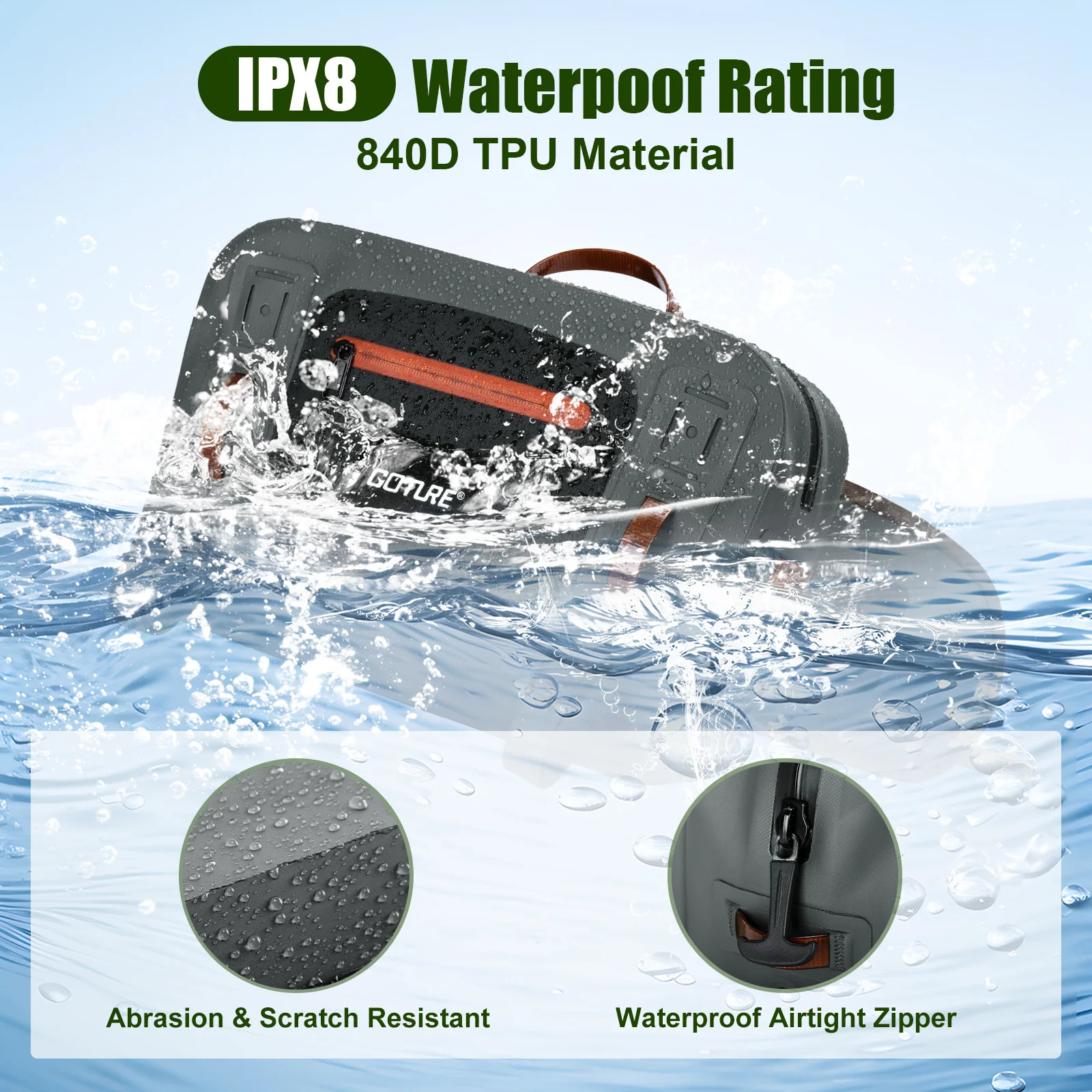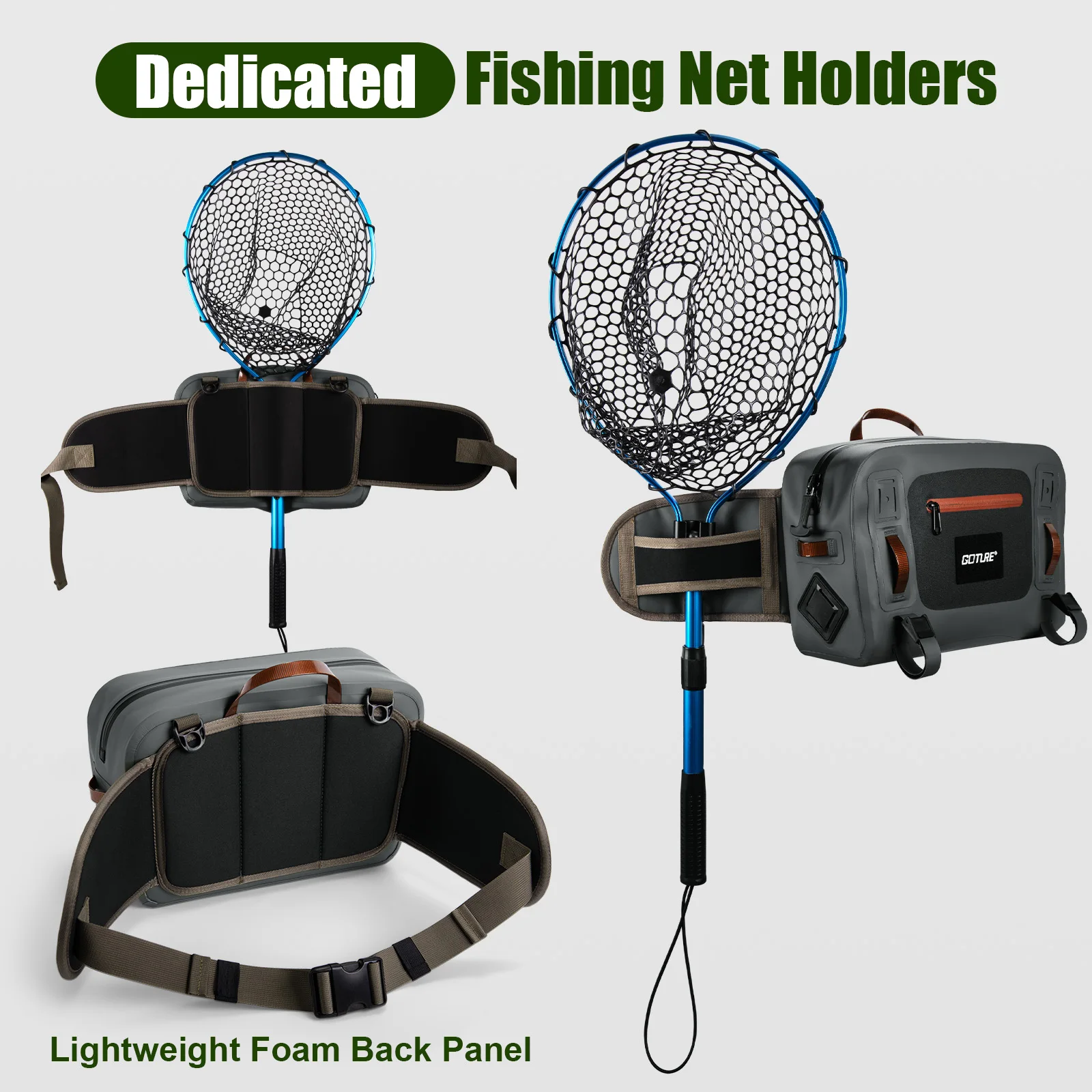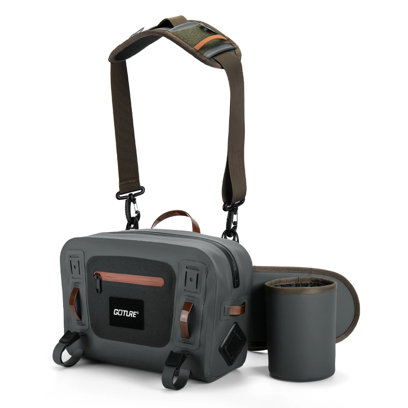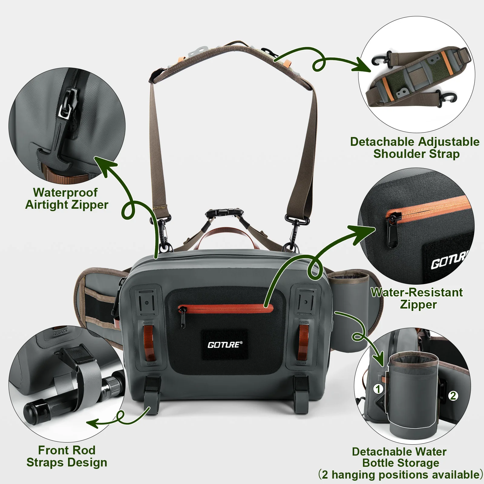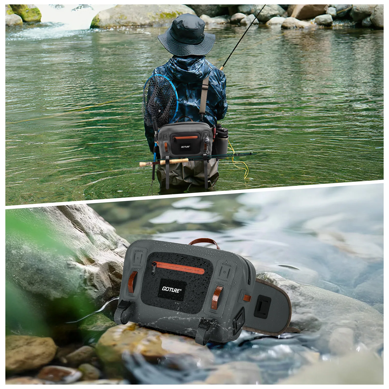 Goture-Bolso de cintura impermeable para pesca con mosca de 10L, 34,5x23x12,5 cm, ultraligero, con múltiples bolsillos, bolsa de pecho para pesca con almacenamiento para caña