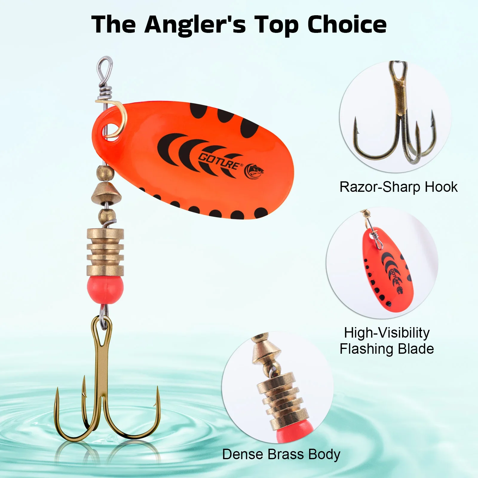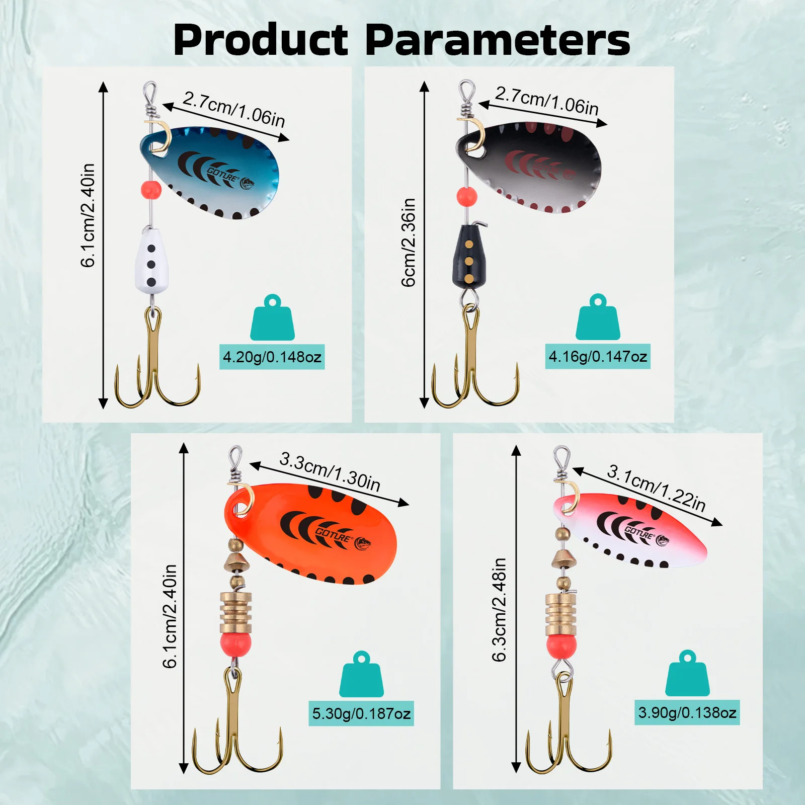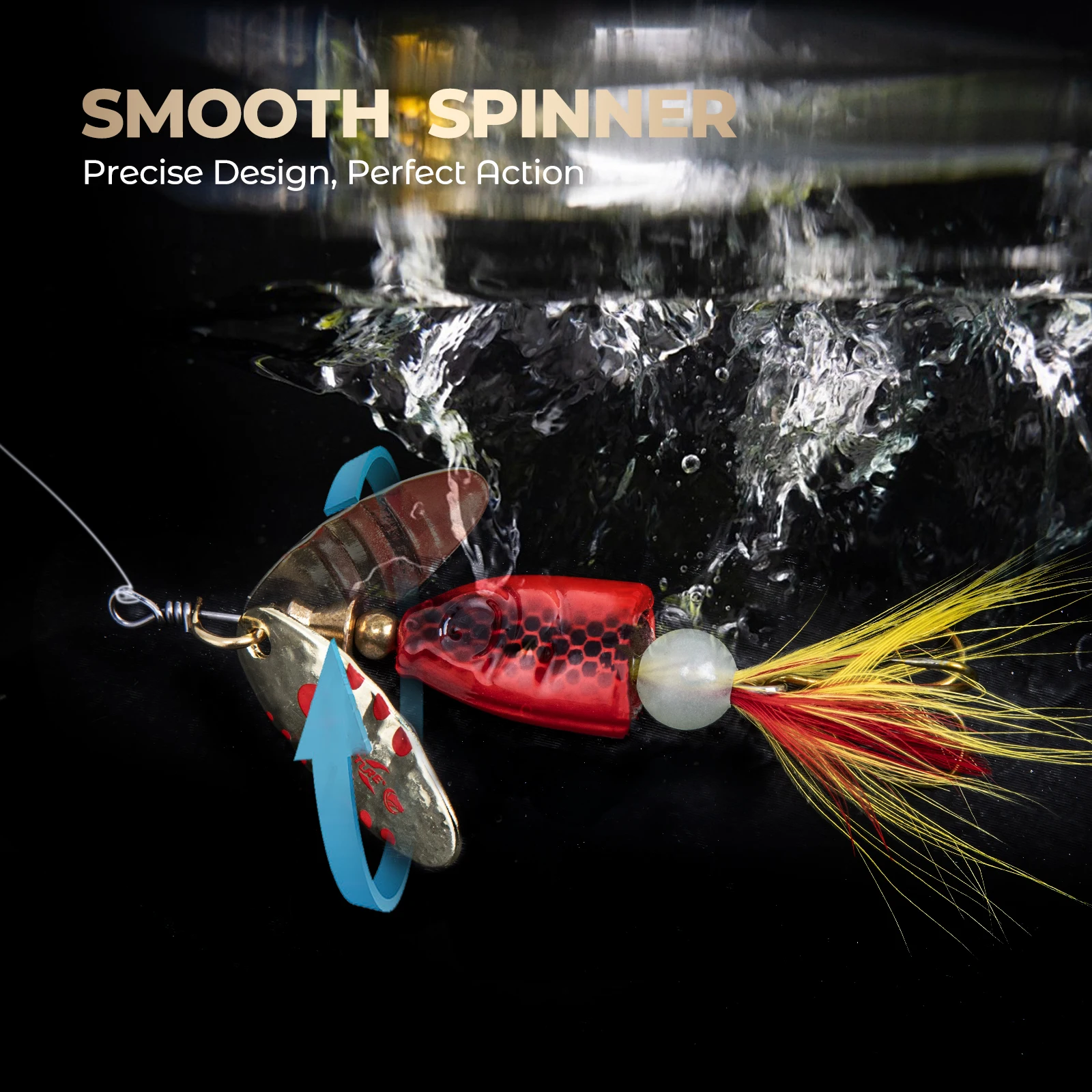 JSFUN 10 Uds cuchara giratoria cebo de Metal Señuelos de Pesca con caja lentejuelas Crankbait cuchara cebos lubina trucha perca Lucio giratorio