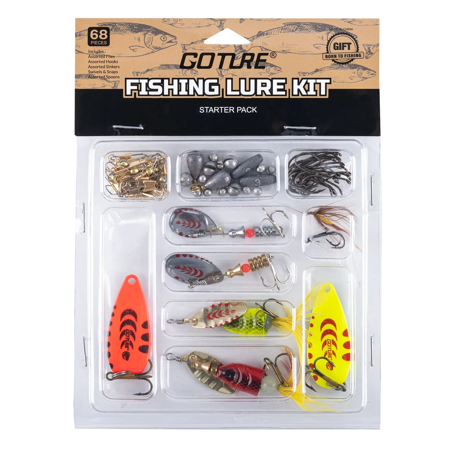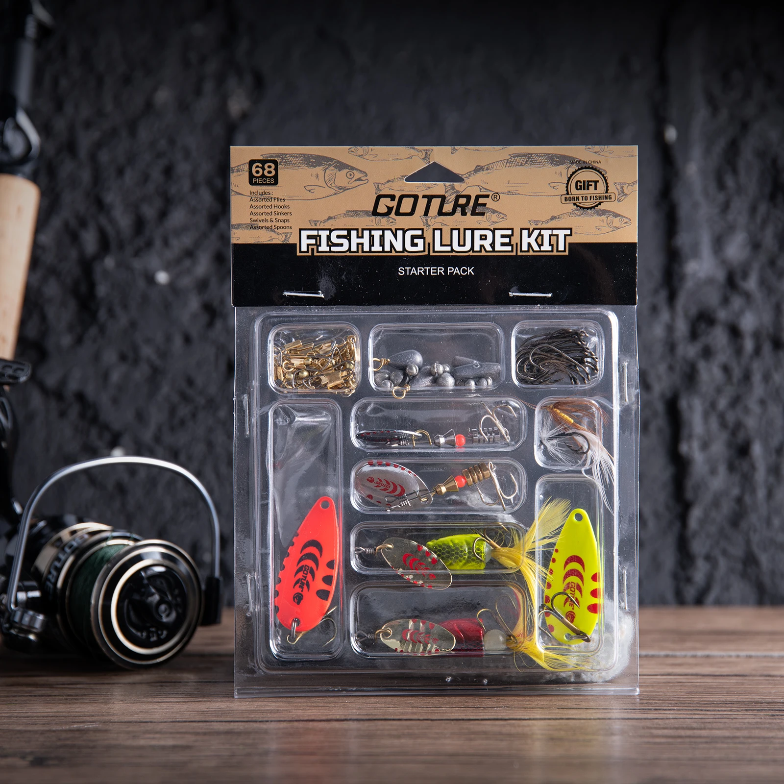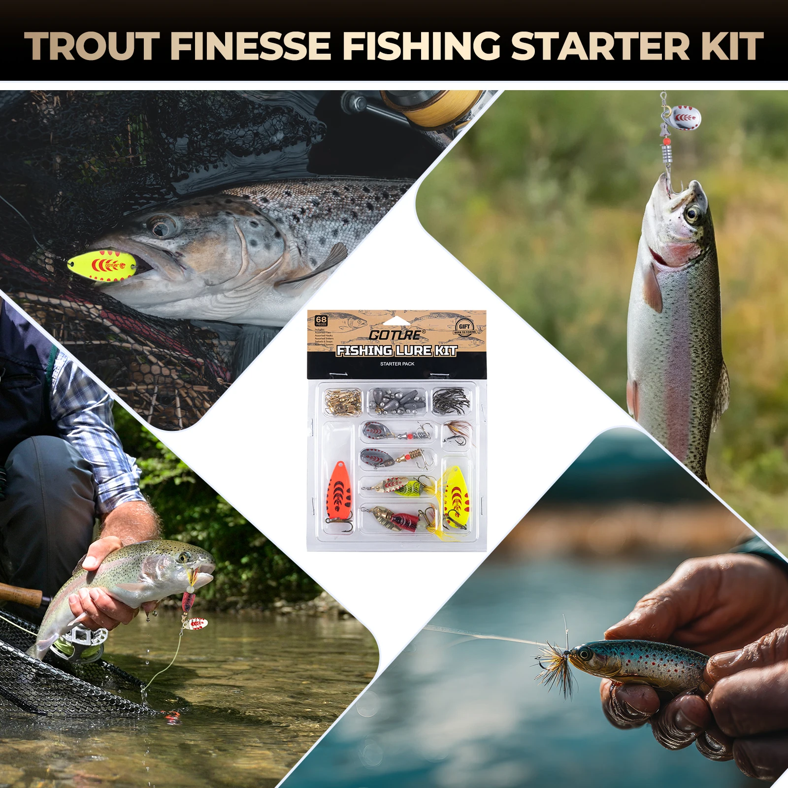 Goture 4 uds/68 Uds Kit de Señuelos de Pesca aparejos en capas equipo profesional señuelo de pesca y plantilla de Metal, para equipo de pesca de trucha/luccio/bajo
