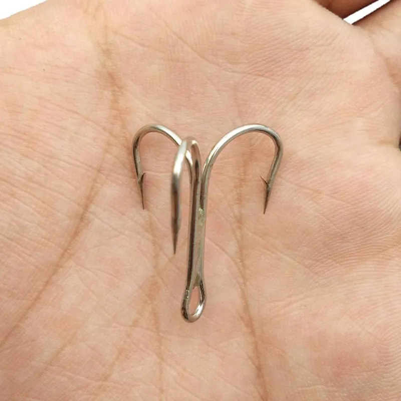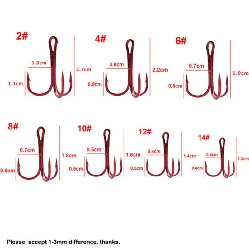 Hyaena 150 Uds. Anzuelos de pesca triples rojos/negros/plateados anzuelos de pesca de pececillo volcados de acero rico en carbono