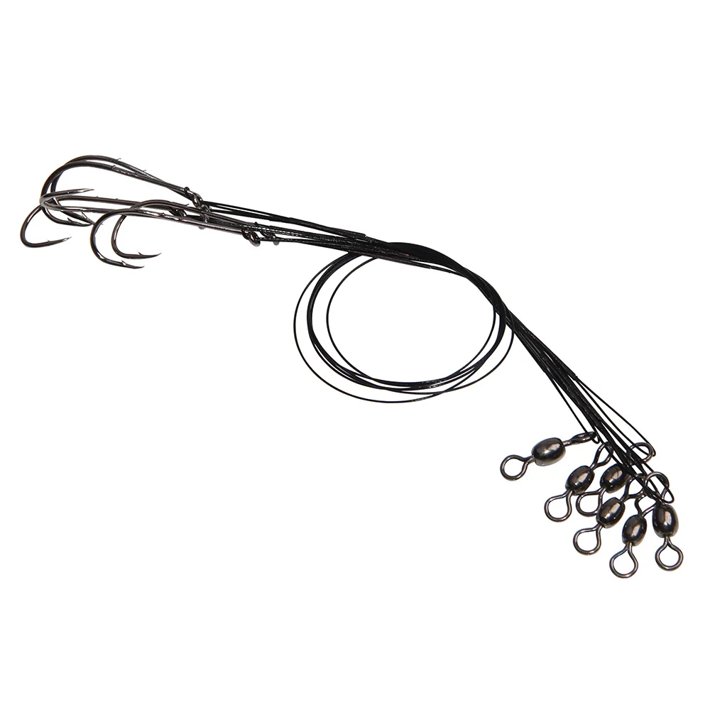 Hyaena 6 unids/bolsa de alambre de pesca de acero inoxidable correa de pesca con mosca con anzuelos y líder de pesca giratorio 25cm antimordedura