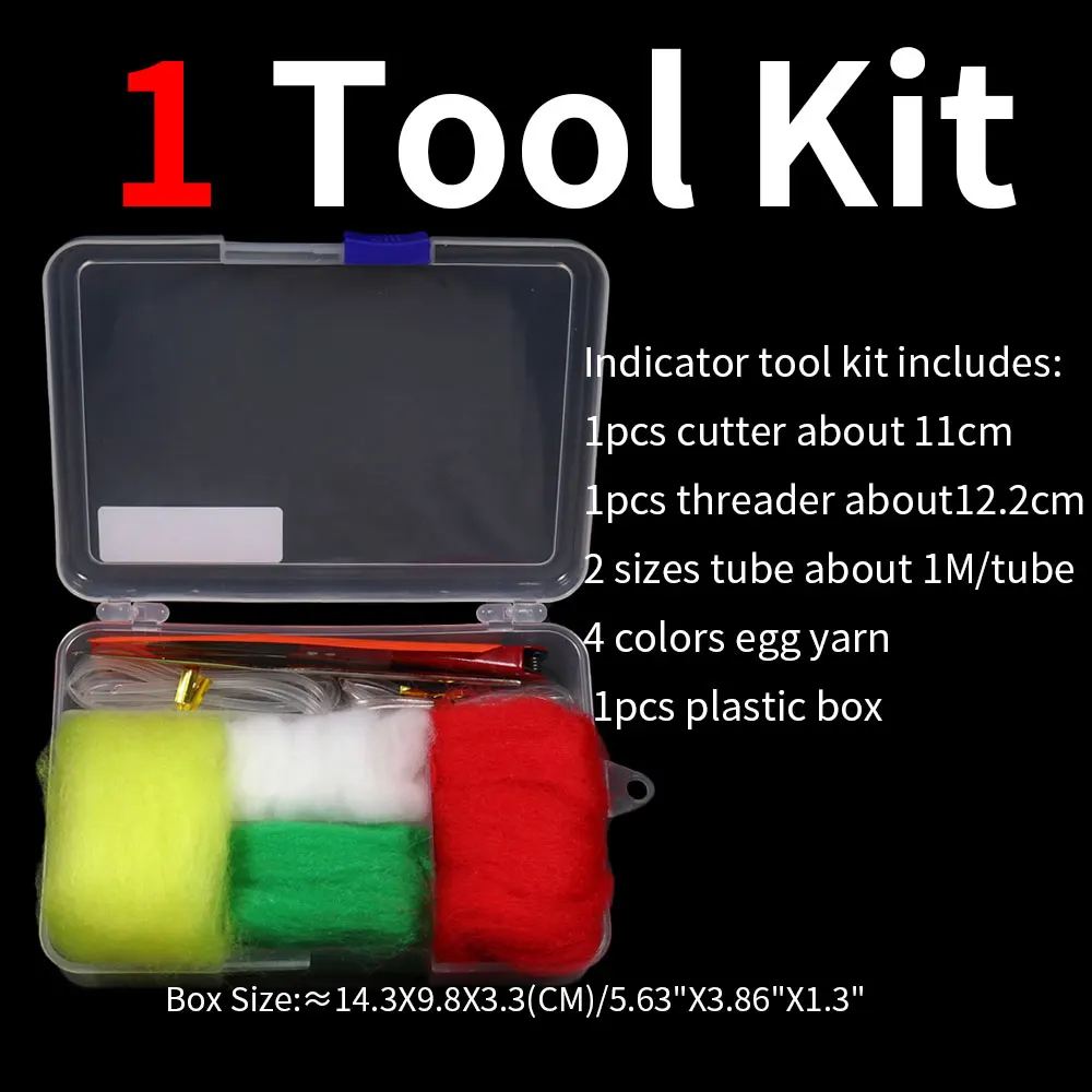 Nuevo kit de herramientas indicadoras de golpe de pesca con mosca de desarrollo, es un conjunto de herramientas muy simple, fácil de operar, simplemente coloque un pequeño trozo de hilo de huevo en su línea y sea fácil de colocar donde desee.Fácil y rápido de mover el indicador hacia arriba o hacia abajo de su líder para atraer la atención de los peces.Sin nudos y sin daños al líder.