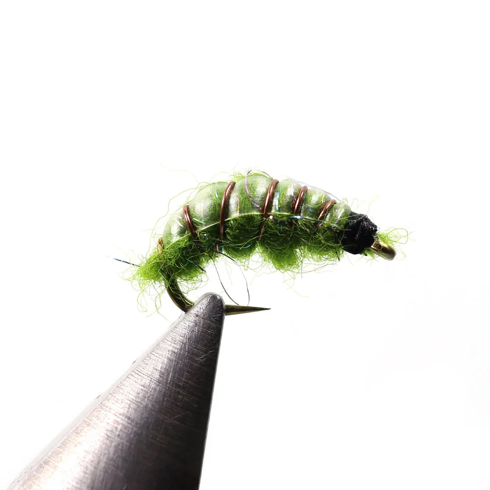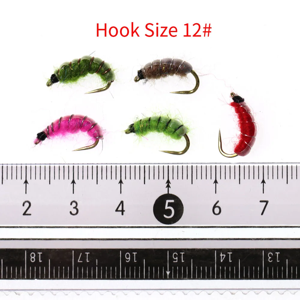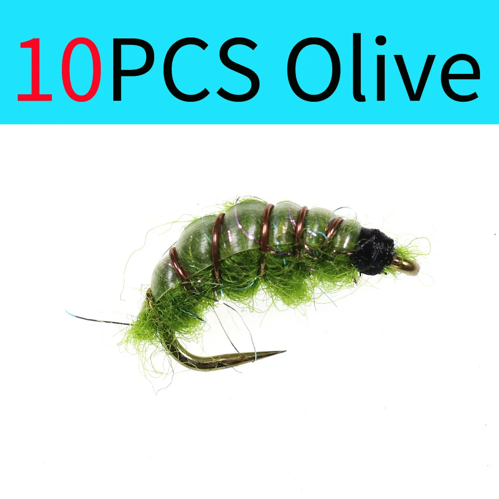 ICERIO 10 Uds moscas de pesca de trucha Scud camarones Scud Cezch mosca pesca ninfas#12 Gancho para mosca sin púas