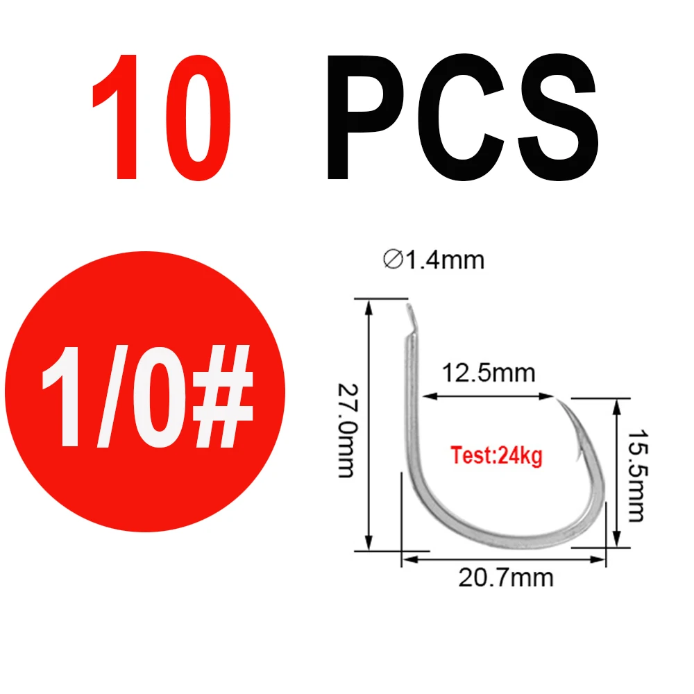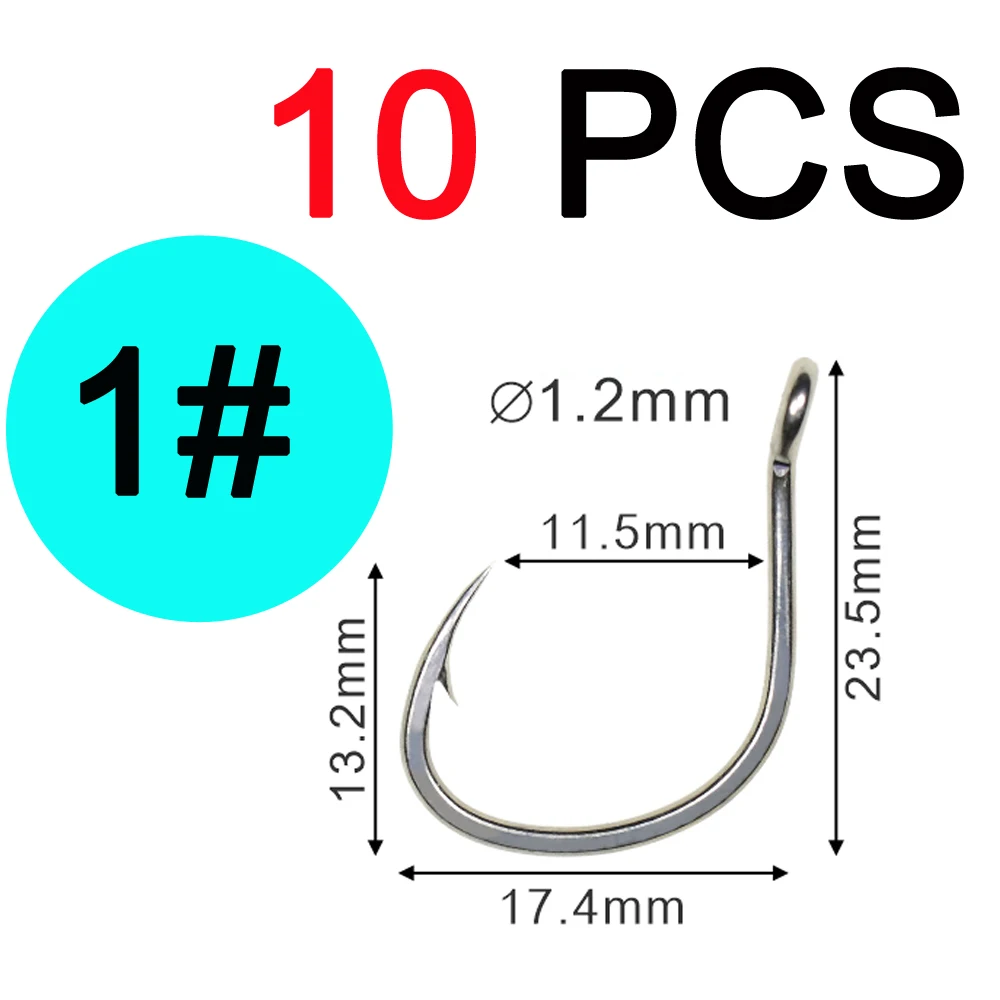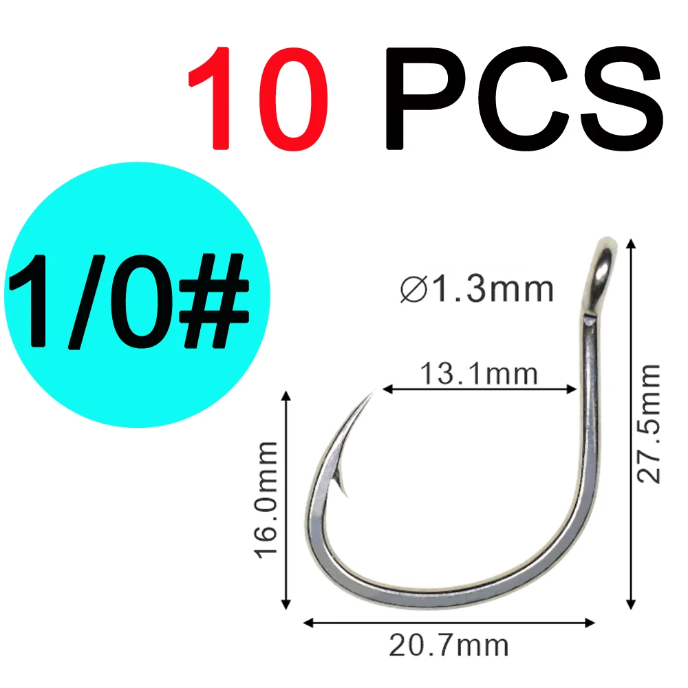 ICERIO 10 Uds. Anzuelos de pesca de agua salada anticorrosión con revestimiento de estaño mate diseño de mango de extremo de pala para ayudar Jigging señuelo gancho 1#,1/0-5/0#