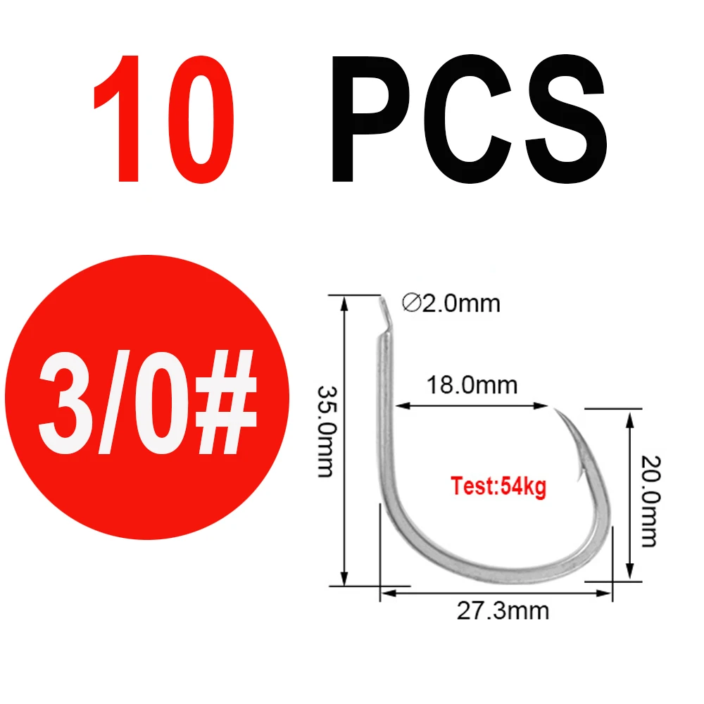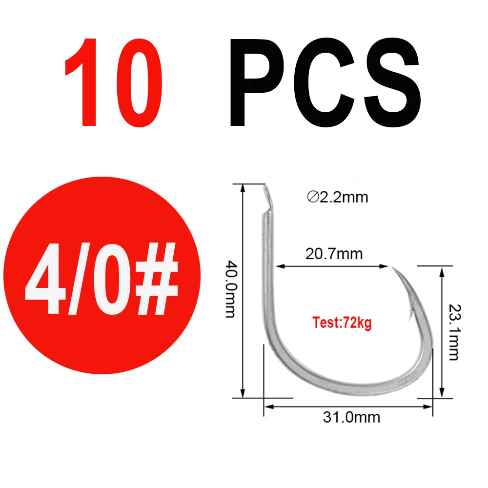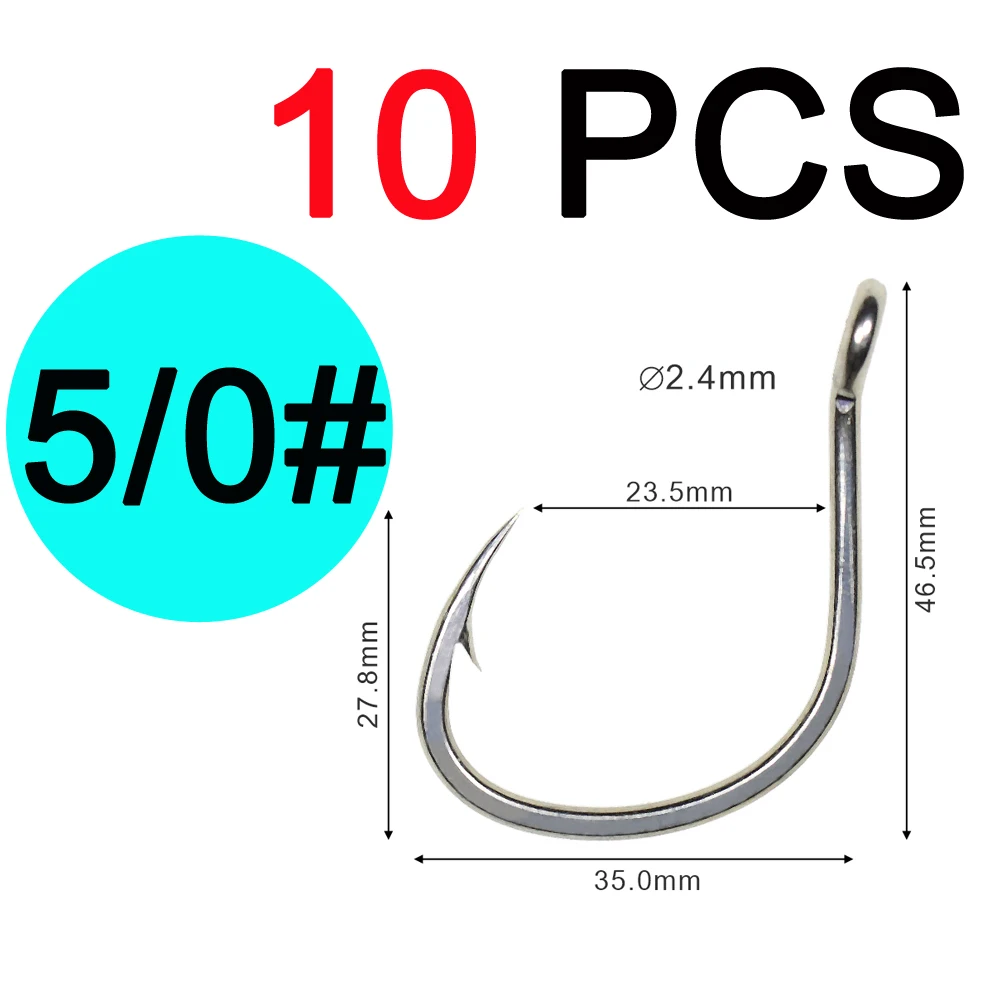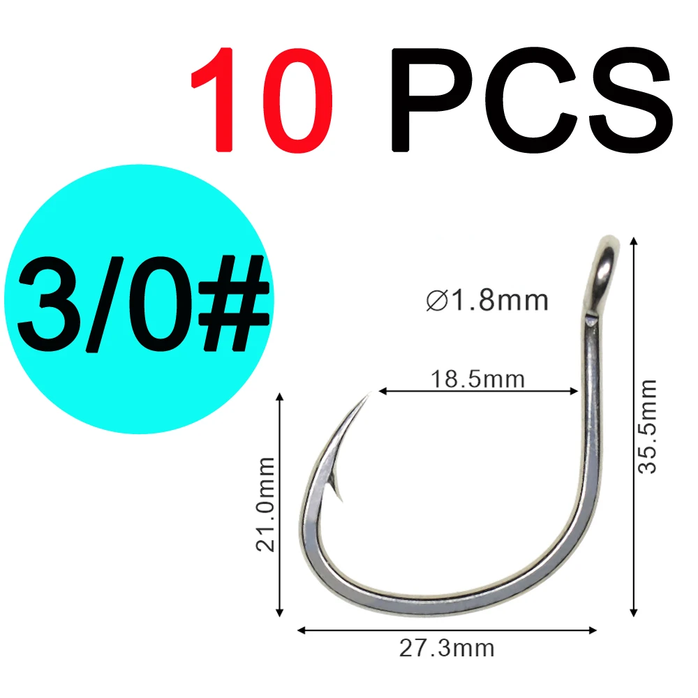 ICERIO 10 Uds. Anzuelos de pesca de agua salada anticorrosión con revestimiento de estaño mate diseño de mango de extremo de pala para ayudar Jigging señuelo gancho 1#,1/0-5/0#