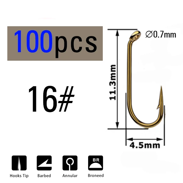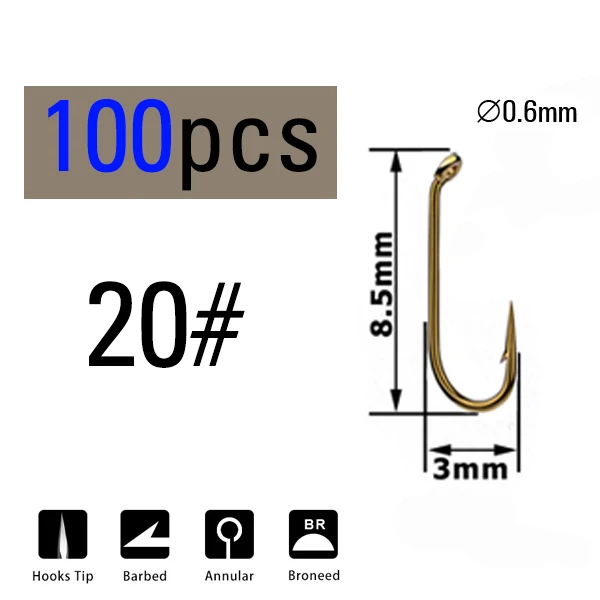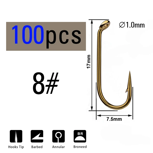ICERIO 100PCS Pesca con mosca Ninfas y serpentinas de mosca húmeda.Ojo abajo.2 veces de largo.Modelo Perfect Bend, Bronce.Material para atar moscas