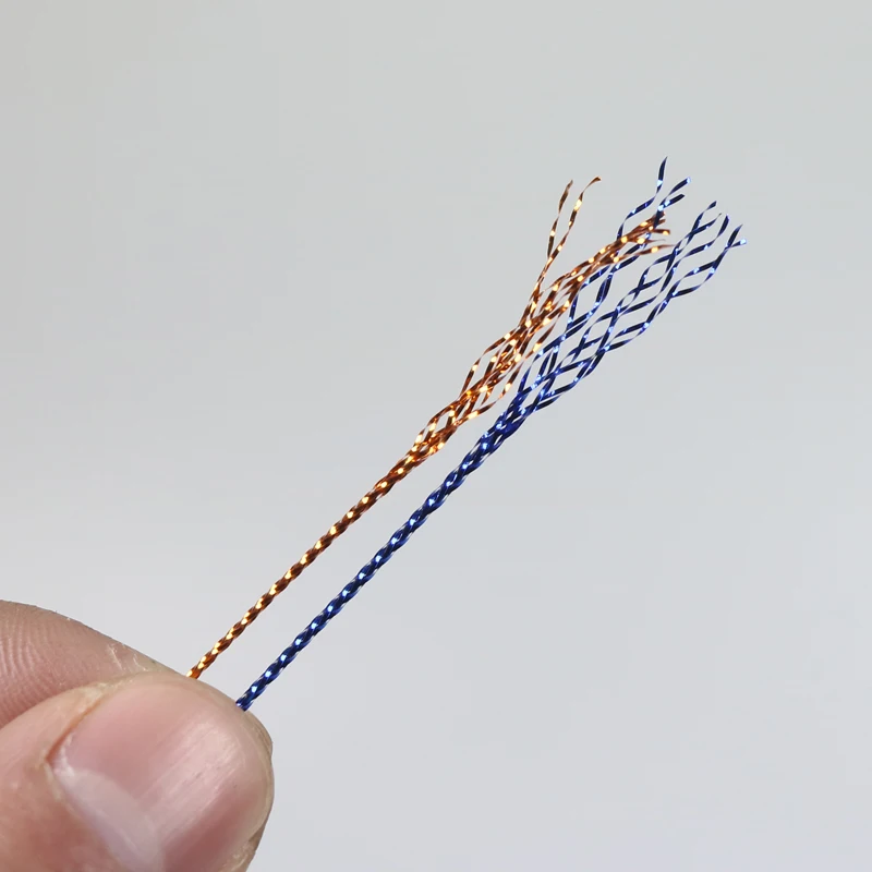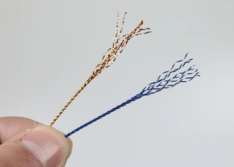 Este nuevo material es como un cordón de Mylar en miniatura. Se puede envolver como hilo dental para un cuerpo brillante sin demasiado volumen.