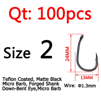 ICERIO-anzuelos de pesca de carpa, anzuelos de pesca de carpa, anzuelo de aparejo de púas, punta de pico de acero de alto carbono, color negro mate, 100 Uds.