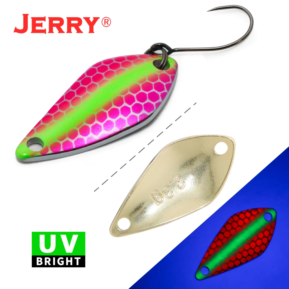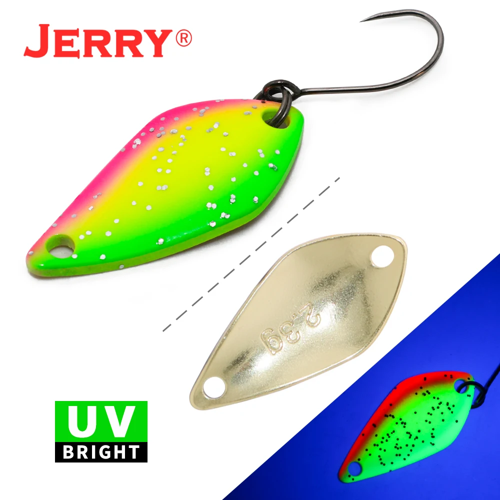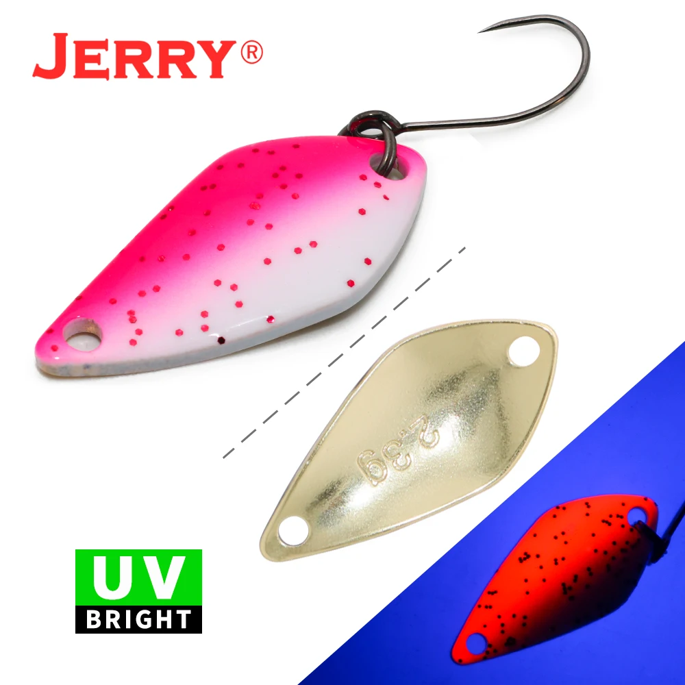 Jerry 2,5g 3.5g 5g pequeñas microcuchillas de pesca cuchara de trucha señuelos pesca spinner cebo color de dos caras