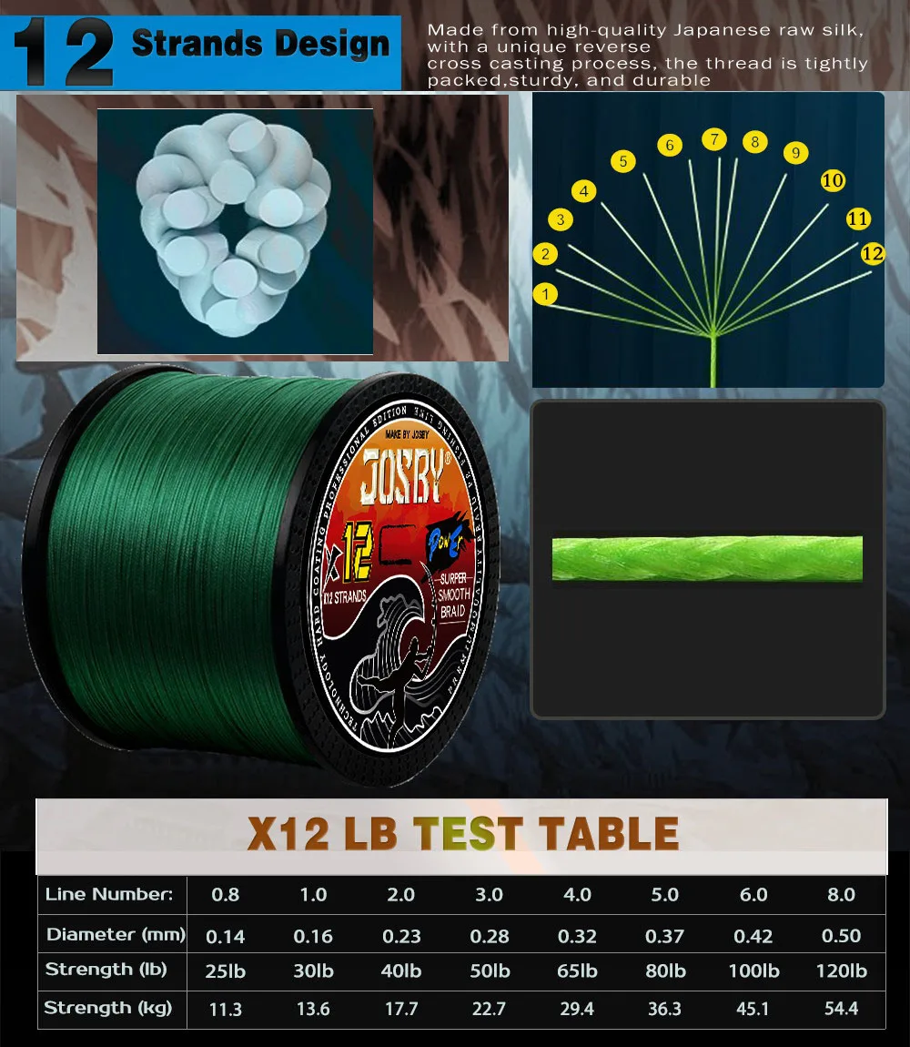 Línea de pesca trenzada JOSBY X12, 500M, 300M, 1000M, multifilamento, agua salada, PE, alambre de carpa, multicolor, Japón, accesorios súper fuertes