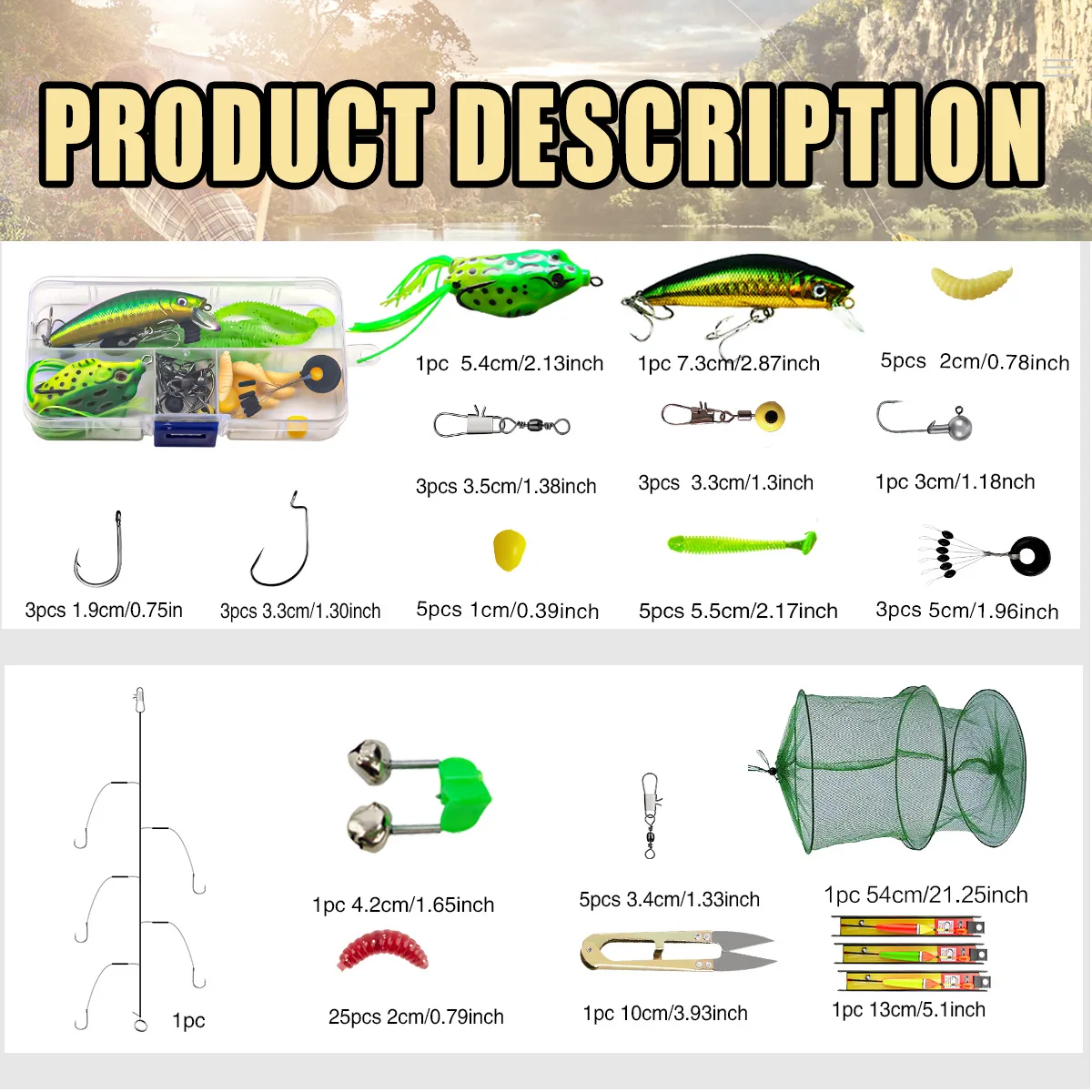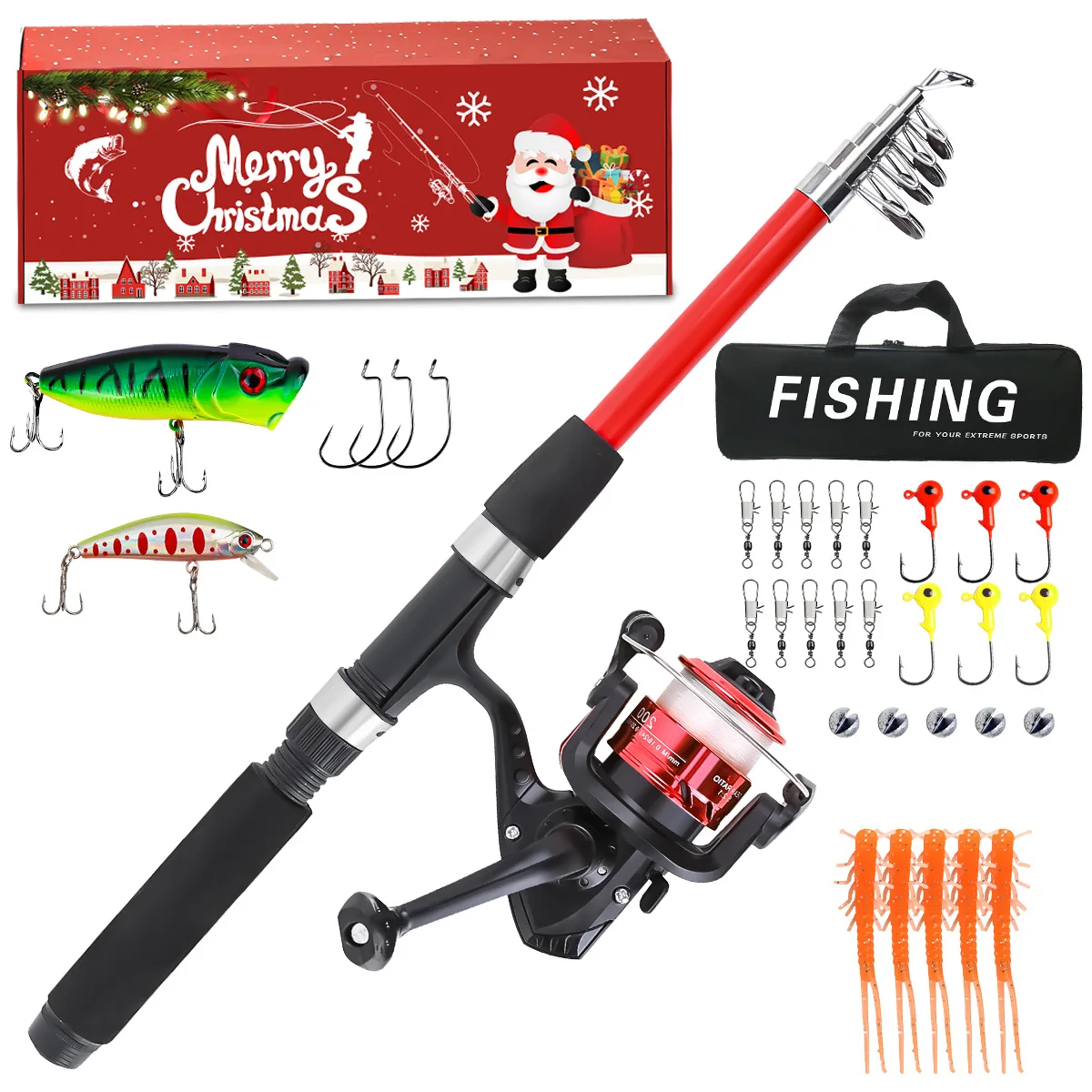 Juego completo de caña de pescar telescópica de fibra de vidrio, Kit de cebo, línea de anzuelo, red de equipo de pesca, caja de regalo de Navidad