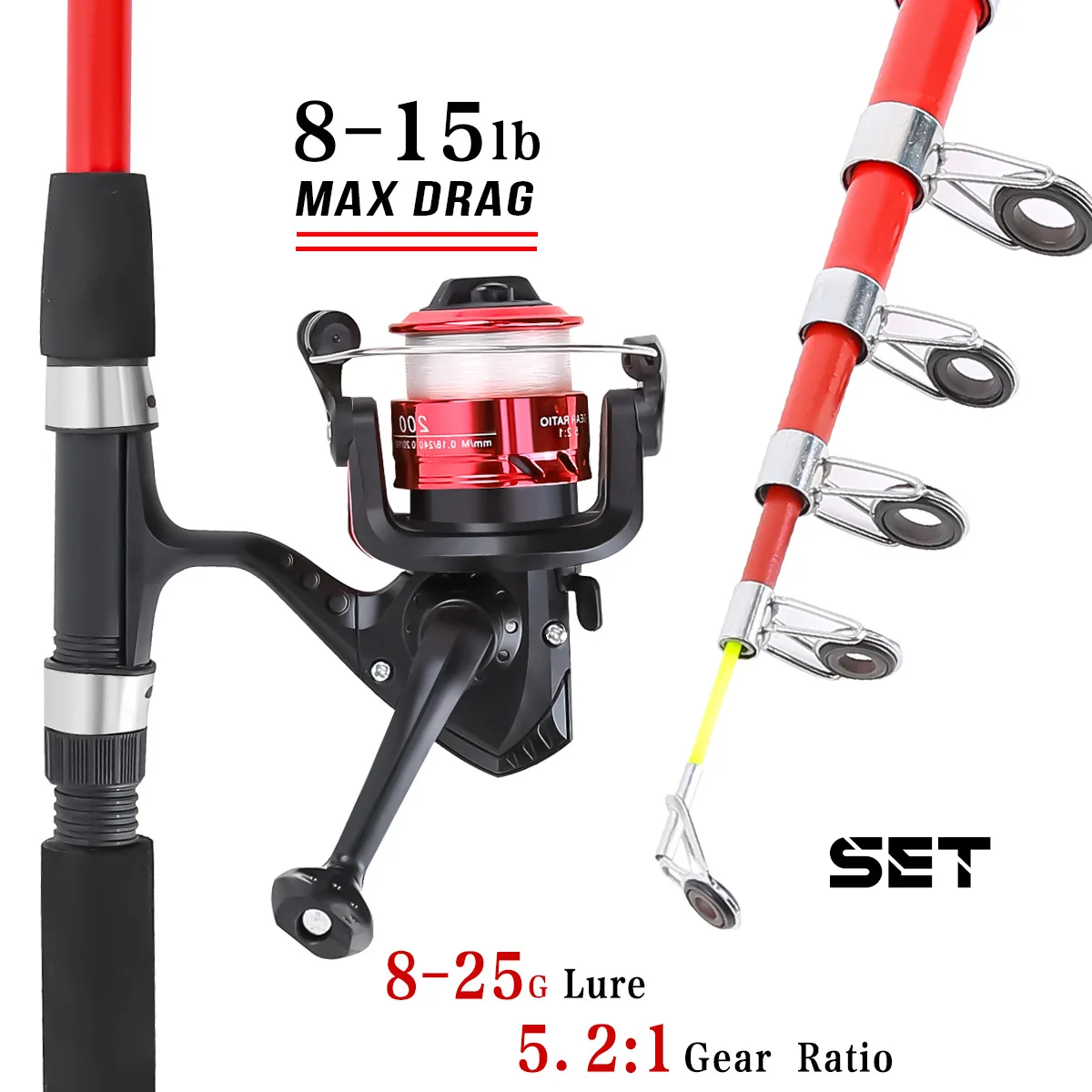 Juego completo de caña de pescar telescópica de fibra de vidrio, Kit de ceb...