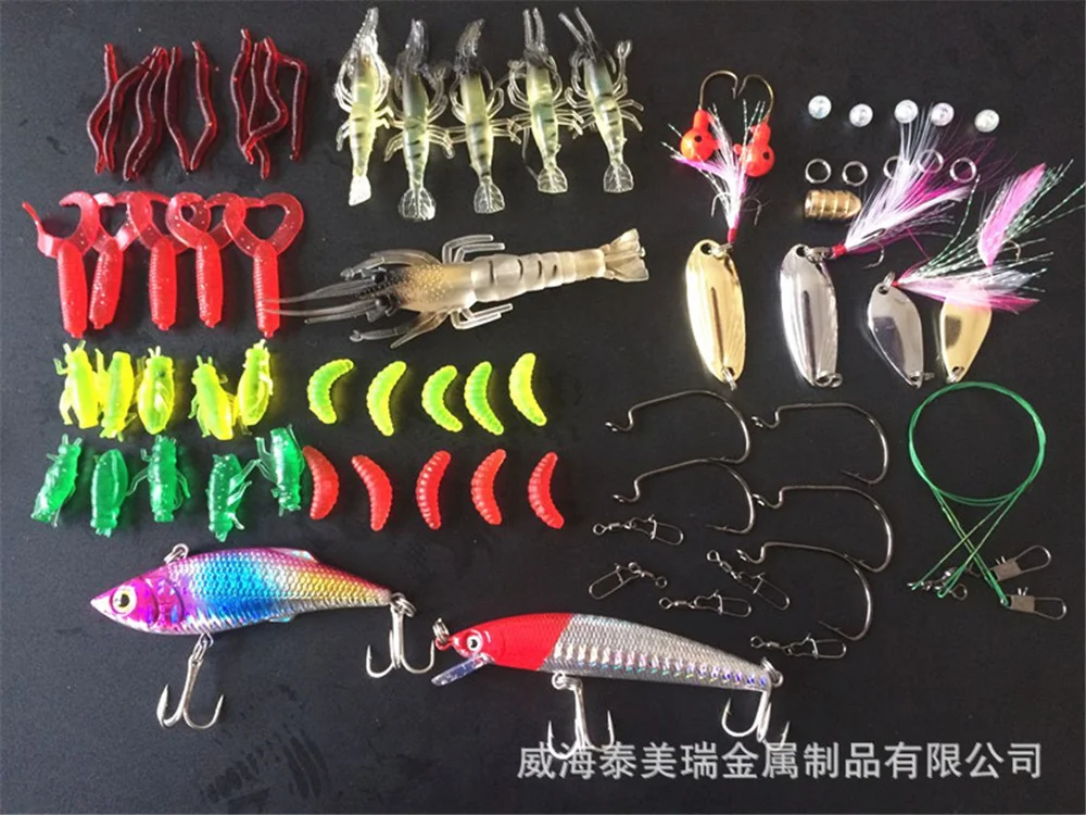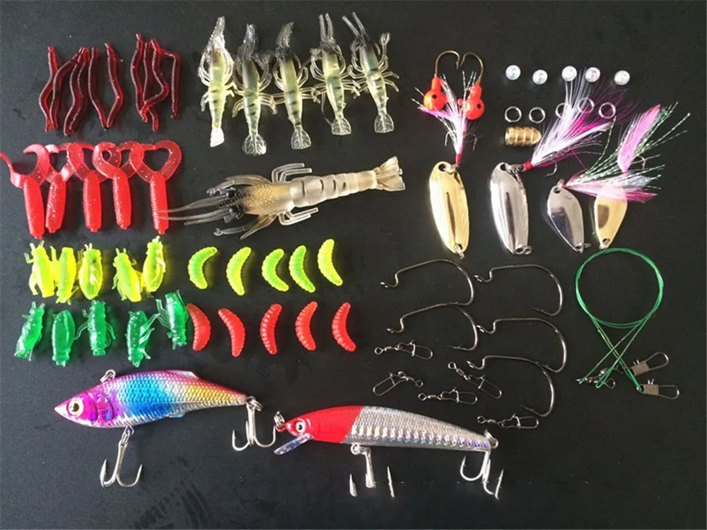 Juego de Señuelos de Pesca, Kit de accesorios de pesca, cebo suave, Spinner, aparejos de línea, grupo giratorio, anzuelo, cebo Artificial para trucha dura