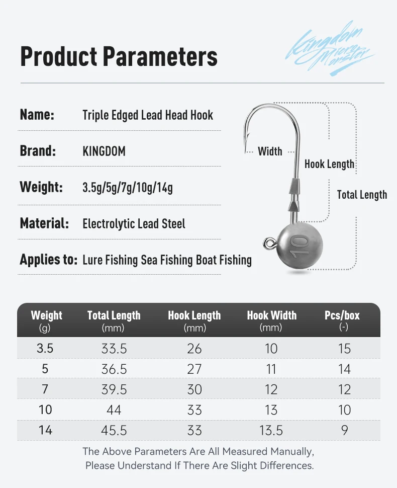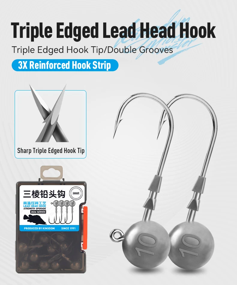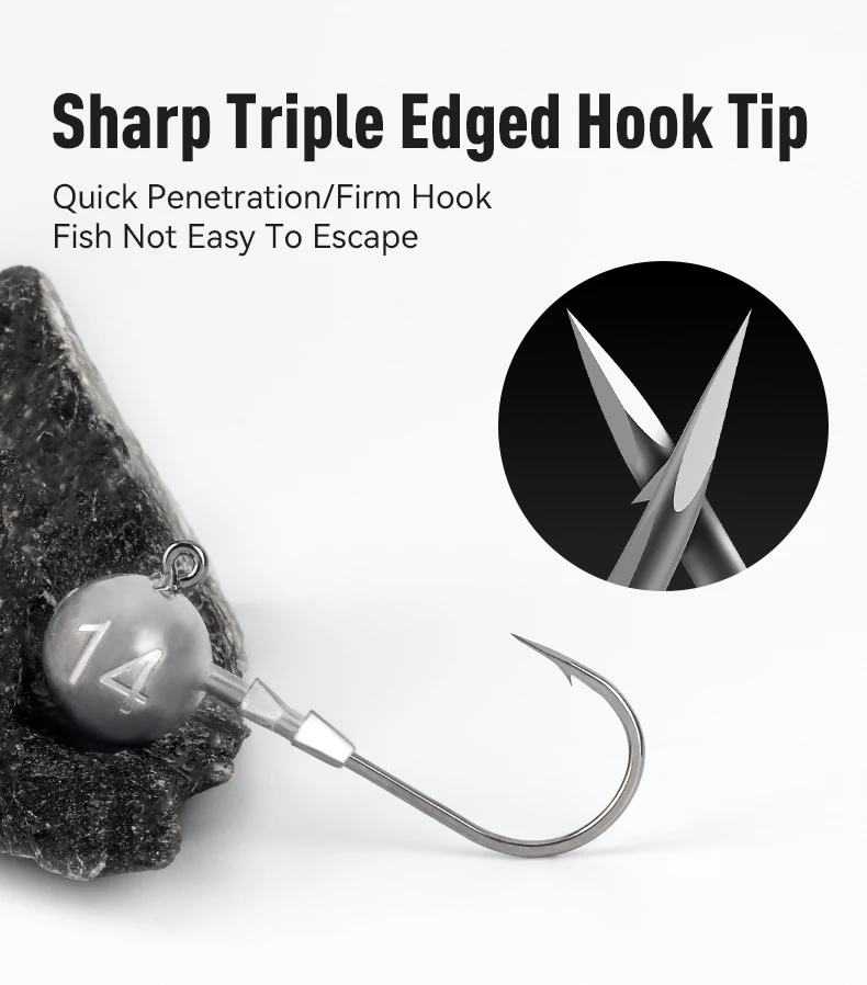 Kingdom 15 Uds anzuelo Jighead 3,5g 5g 7g 10g 14g 3x acero rico en carbono Triple borde gancho accesorios de aparejos de pesca