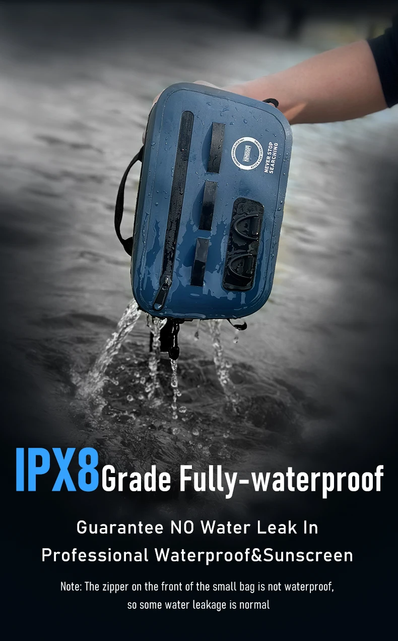 1.Totalmente impermeable, resistente al sol y al agua, protegiendo el equipo de pesca interno contra daños.