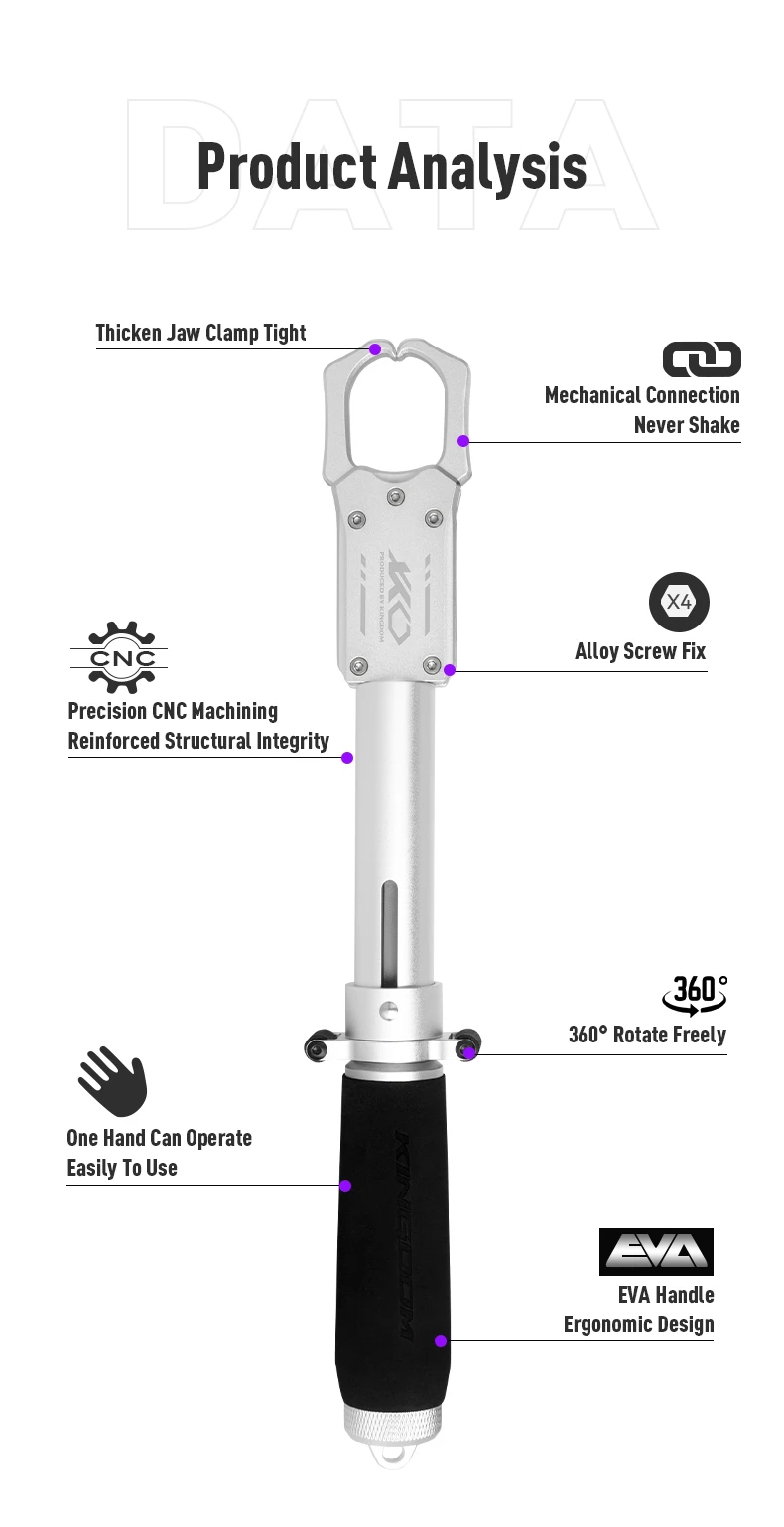 - Mandíbulas de bloqueo: Las mandíbulas autoblocantes con resorte sujetan a los peces firmemente (incluso resbaladizos o escurridos).