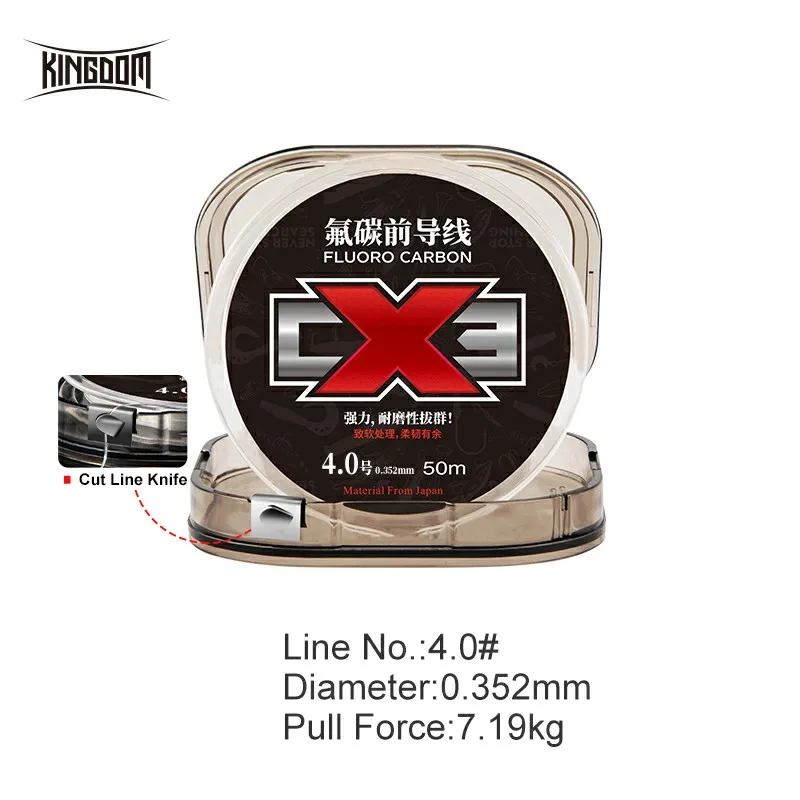 Kingdom-Líneas de pesca de fluorocarbono CX3, línea de pesca de carbono, línea de hundimiento invisible, súper suave y rígida, 50m