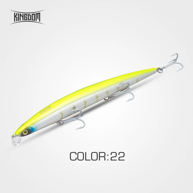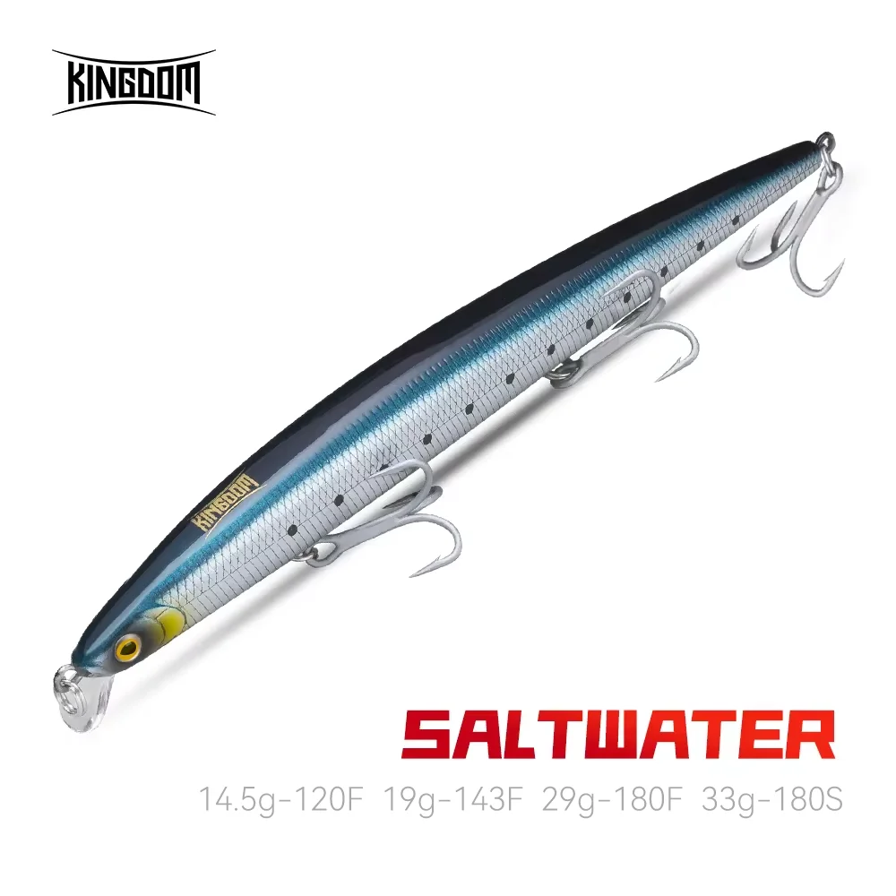 Kingdom Señuelos de pesca de mar 14.5g 19g 29g 33g cebos flotantes de hundimiento lento Minnow Wobbler cebos duros artificiales anzuelos VMC aparejos de pesca