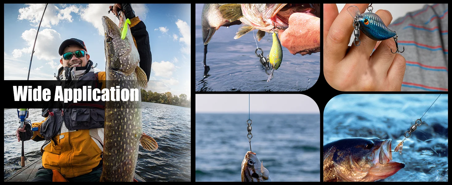 Los giratorios también se utilizan para sujetar múltiples piezas de aparejos a una línea principal, como conectar con un cebo duro o un girador.