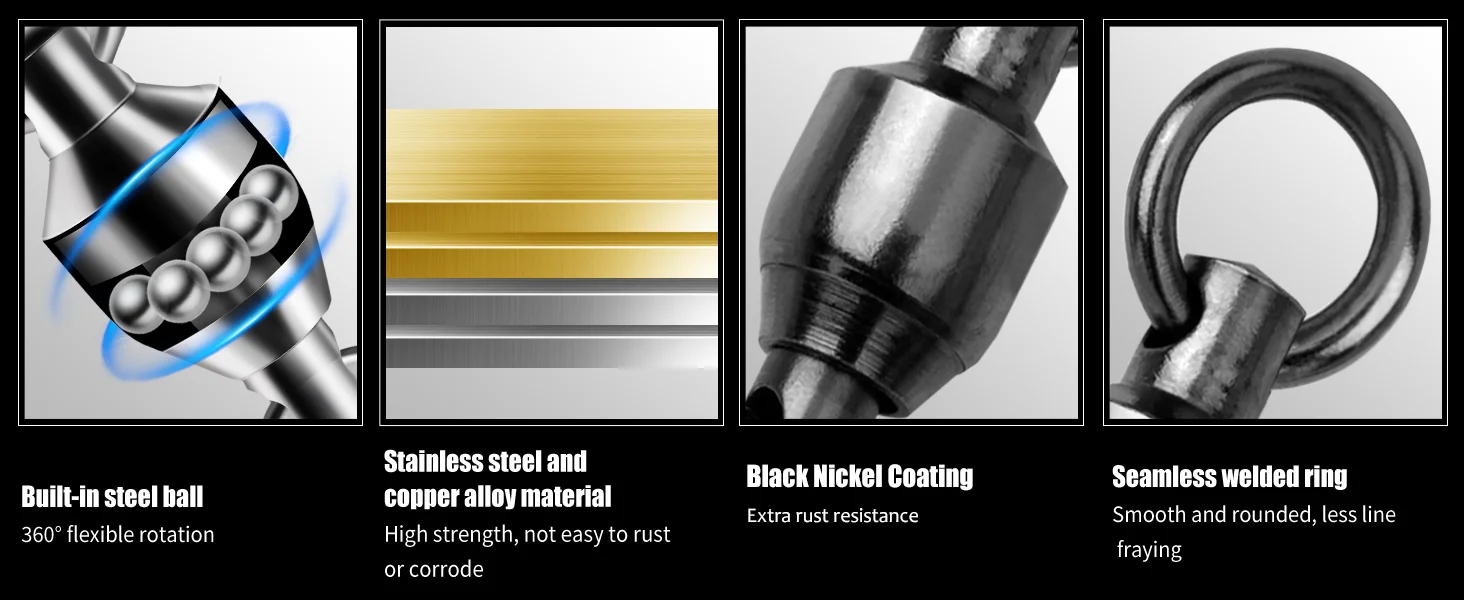 Bolas de acero inoxidable: construidas con 6 bolas de acero inoxidable, mantienen los giratorios del rodamiento de bolas permiten una rotación suave y evitan la torsión de las líneas.