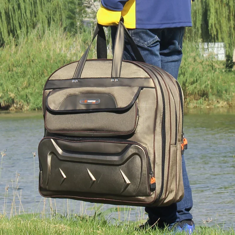Lawaia-mochila de equipo de pesca, bolso de tres capas, pez impermeable más grueso, envuelto en bolsa de pesca de concha dura de alta capacidad