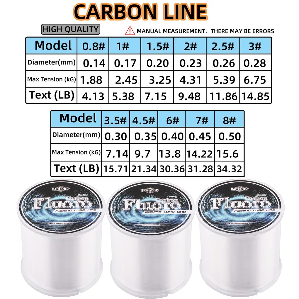 Línea de pesca con revestimiento de fluorocarbono de 500M, línea líder de monofilamento de fibra de carbono de fluoro de 4,13LB-34,32LB, línea de hundimiento para pesca de carpa