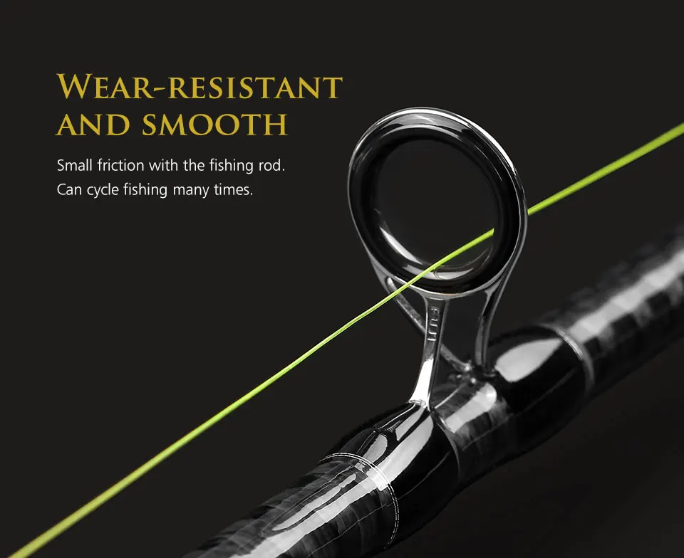 + Resistente al desgaste y suave, pequeña fricción con la caña de pescar, puede pescar en bicicleta muchas veces.