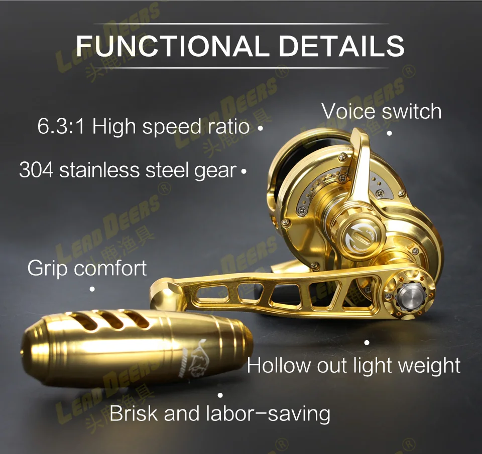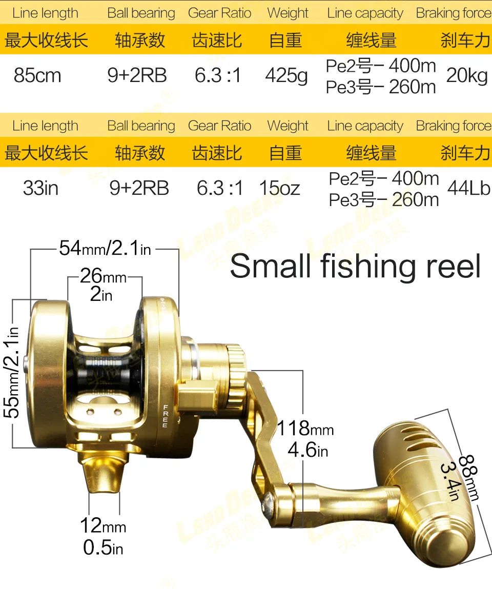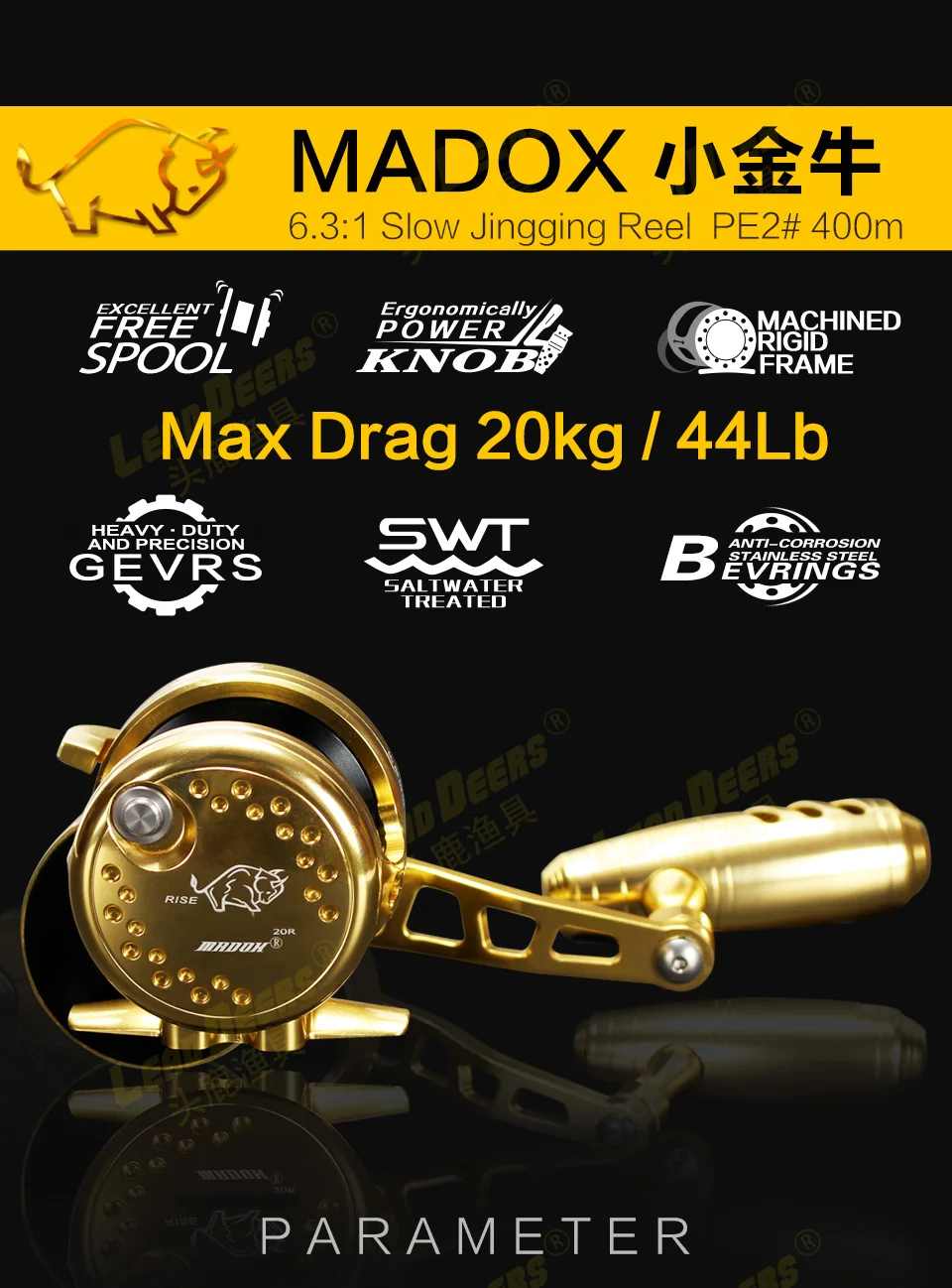 Madox Carrete de Jigging Lento Pe2 # - 400m Arrastre Máximo 20kg 11BB Alta Velocidad G-Ratio 6,3: 1 400g Carrete de Pesca en Barco Marino Carrete de Curricán