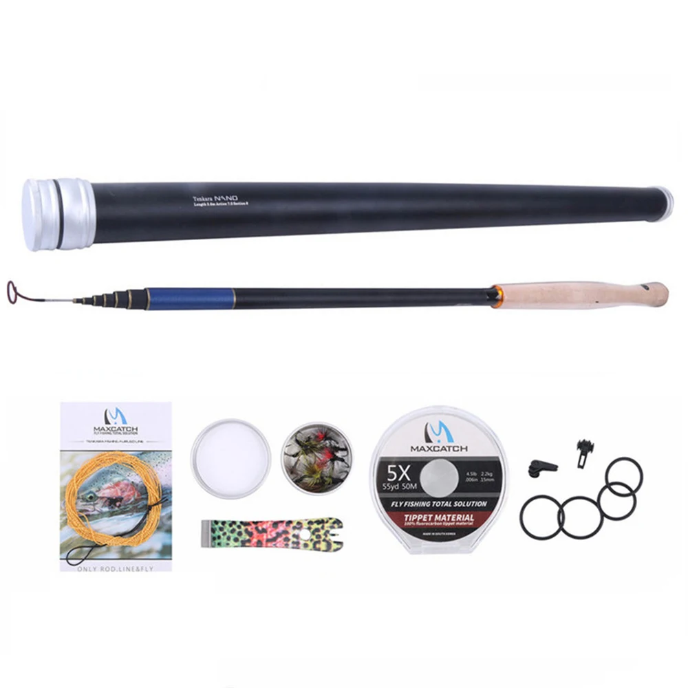 Maxcatch 13FT Tenkara Nano Japonés Fibra de Carbono caña de Pescar con Mosca 6:4/7:3 Acción 8/9 Segmentos Caña con Mosca