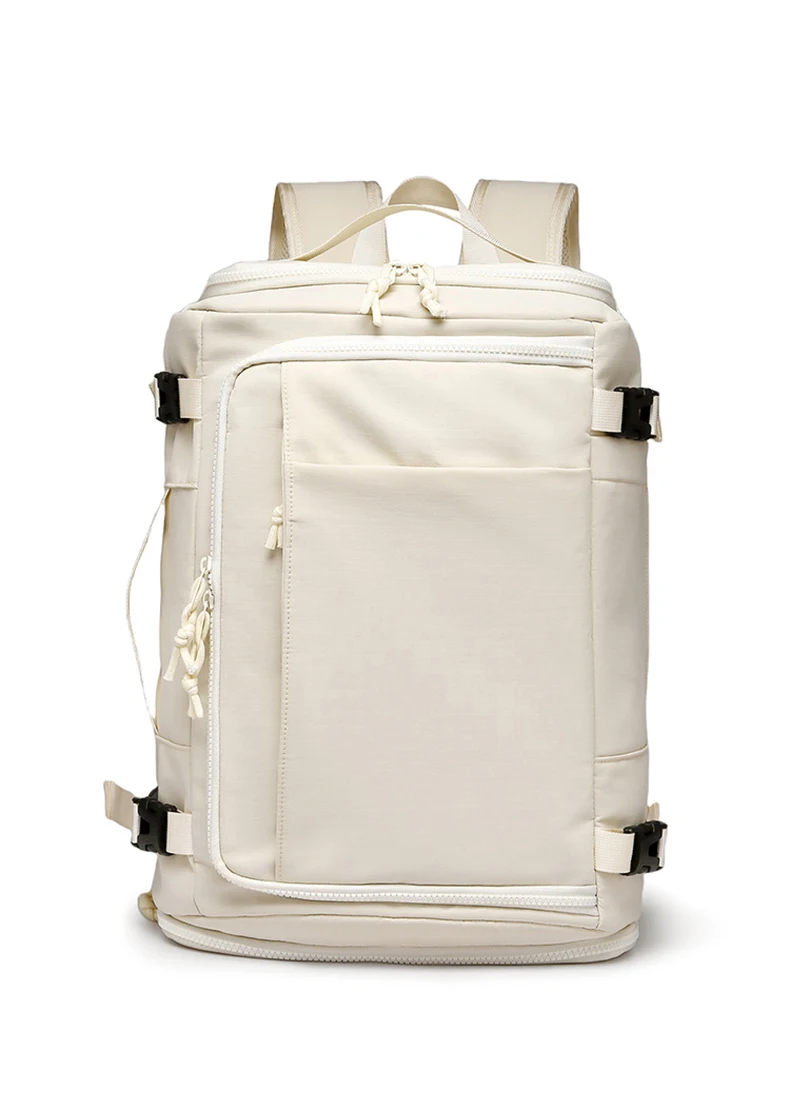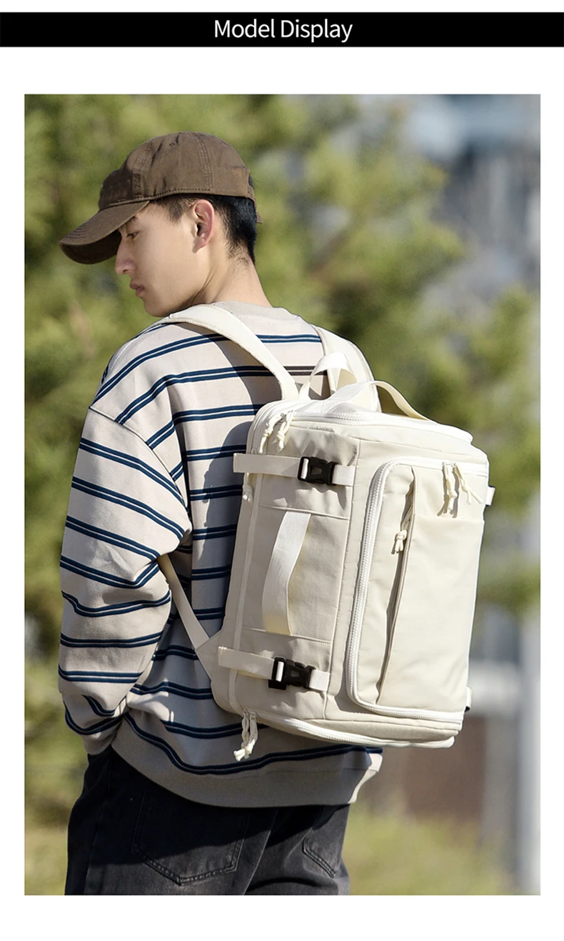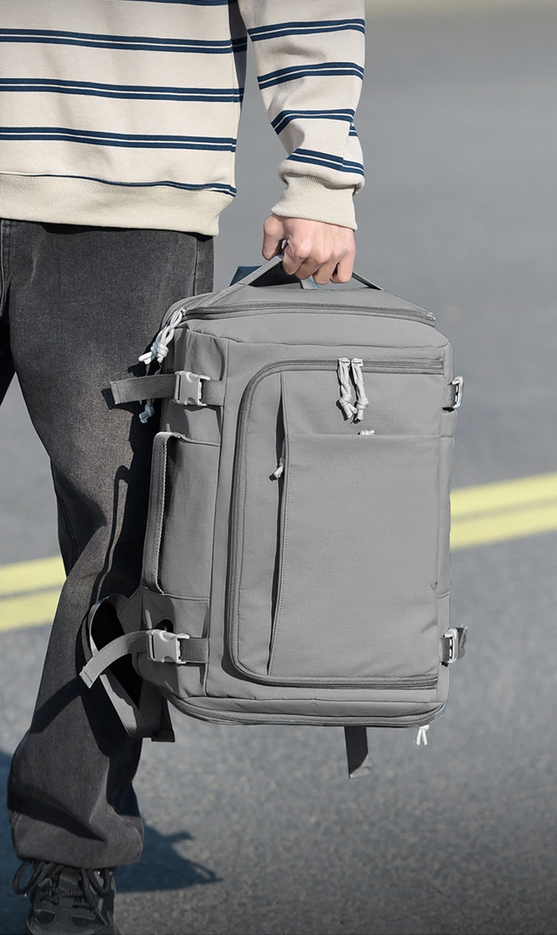Mochila expandible de 1,28-38L con compartimento separado para zapatos, bolsillo húmedo/seco y bolsillo separado para computadora en la parte posterior.