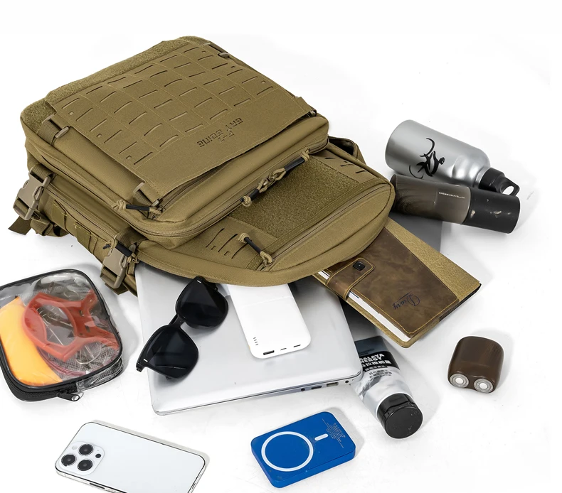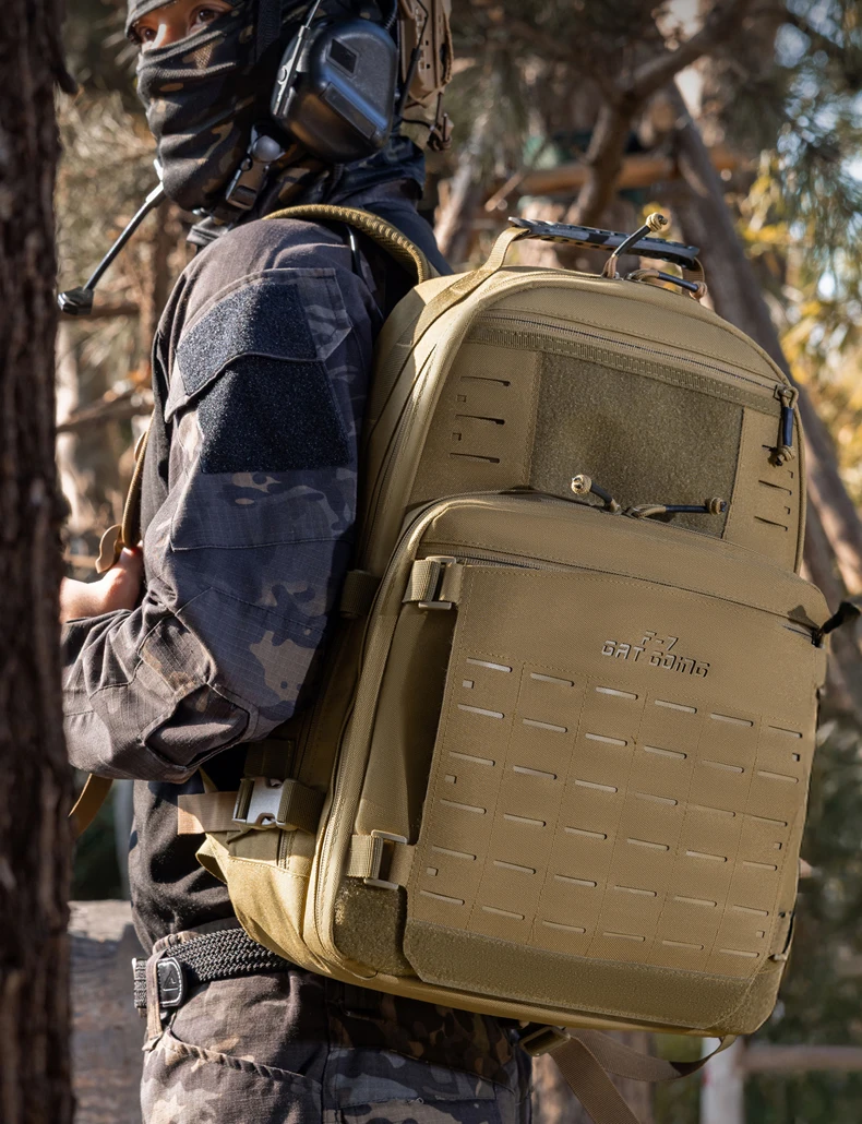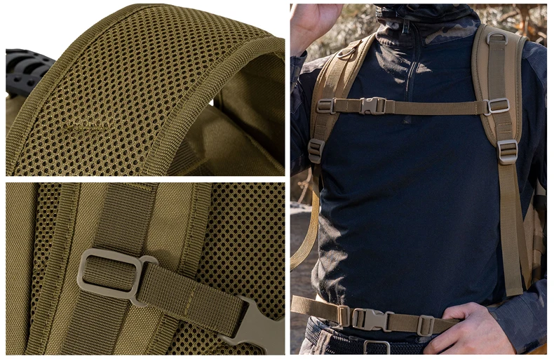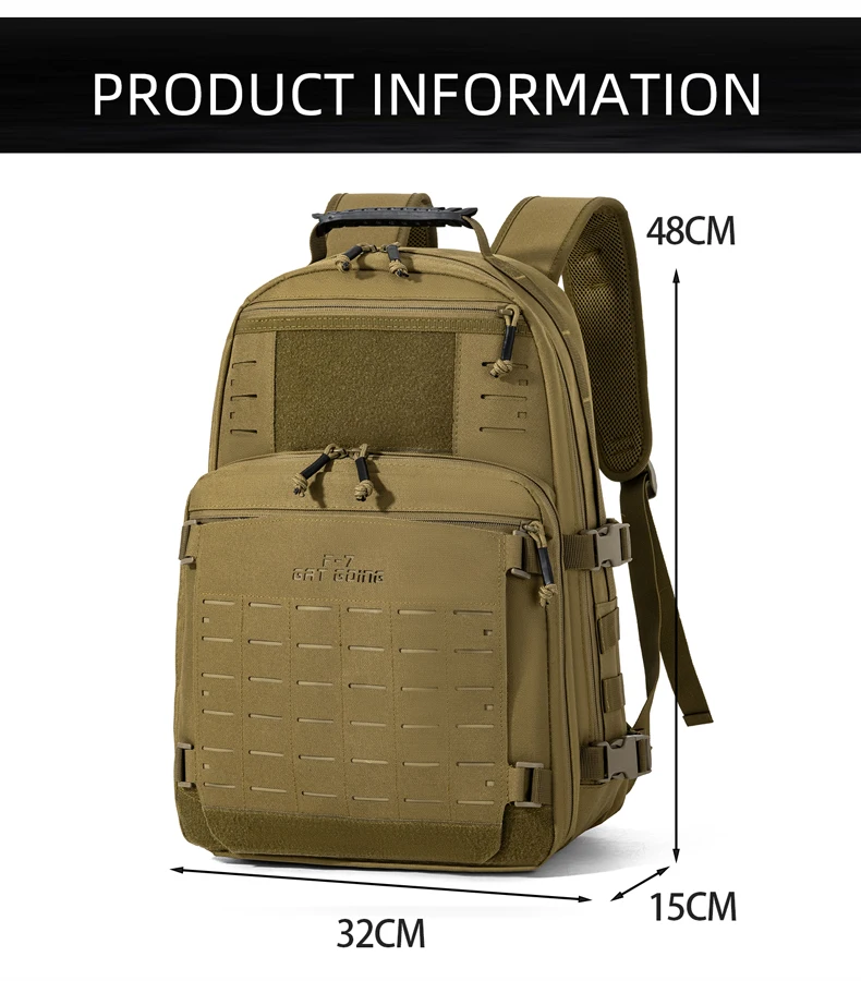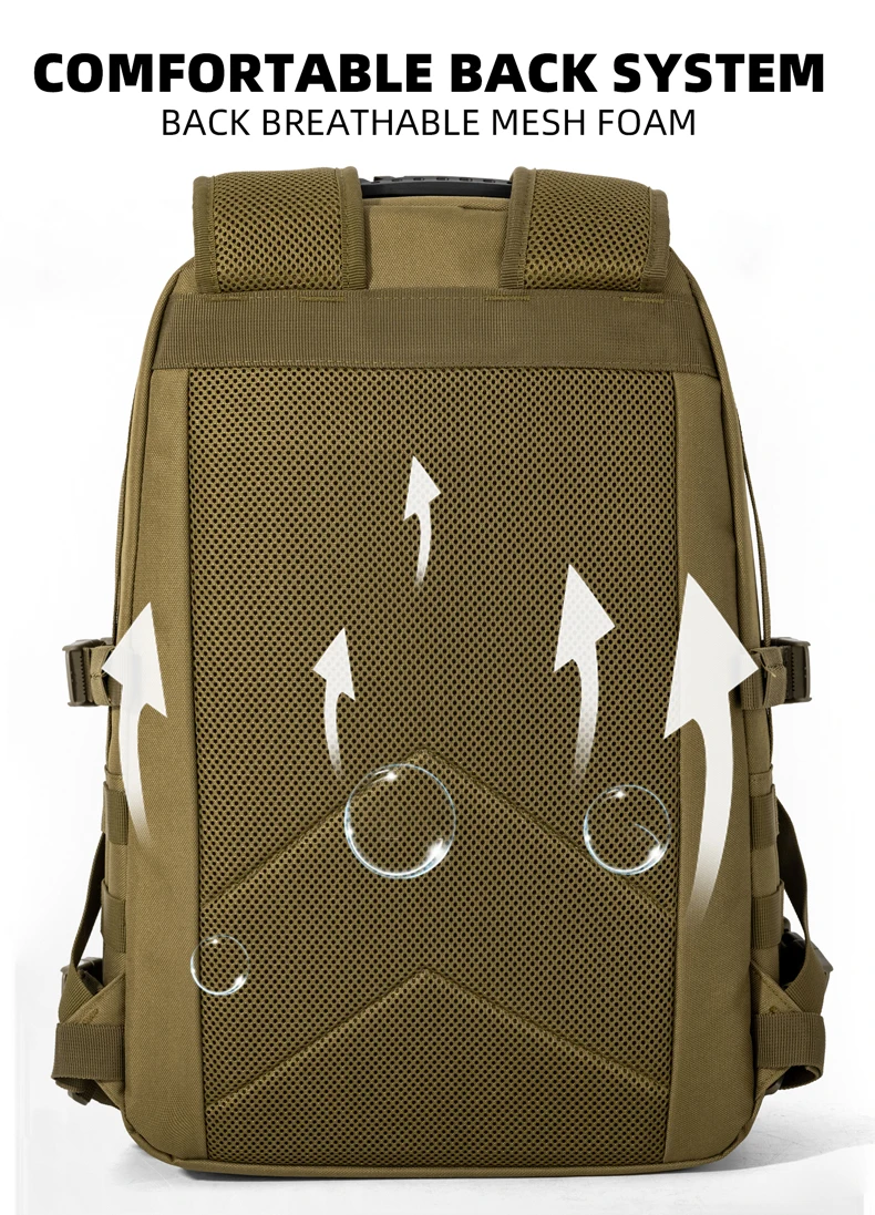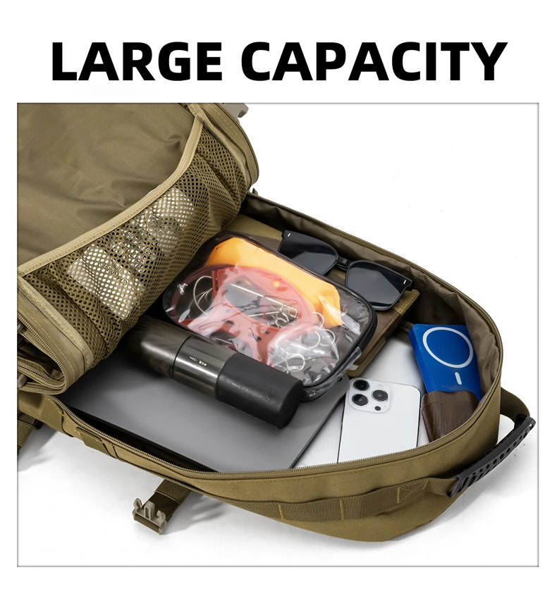 1.Equipada con un sistema Molle táctico, esta mochila permite una fácil fijación de equipo adicional.