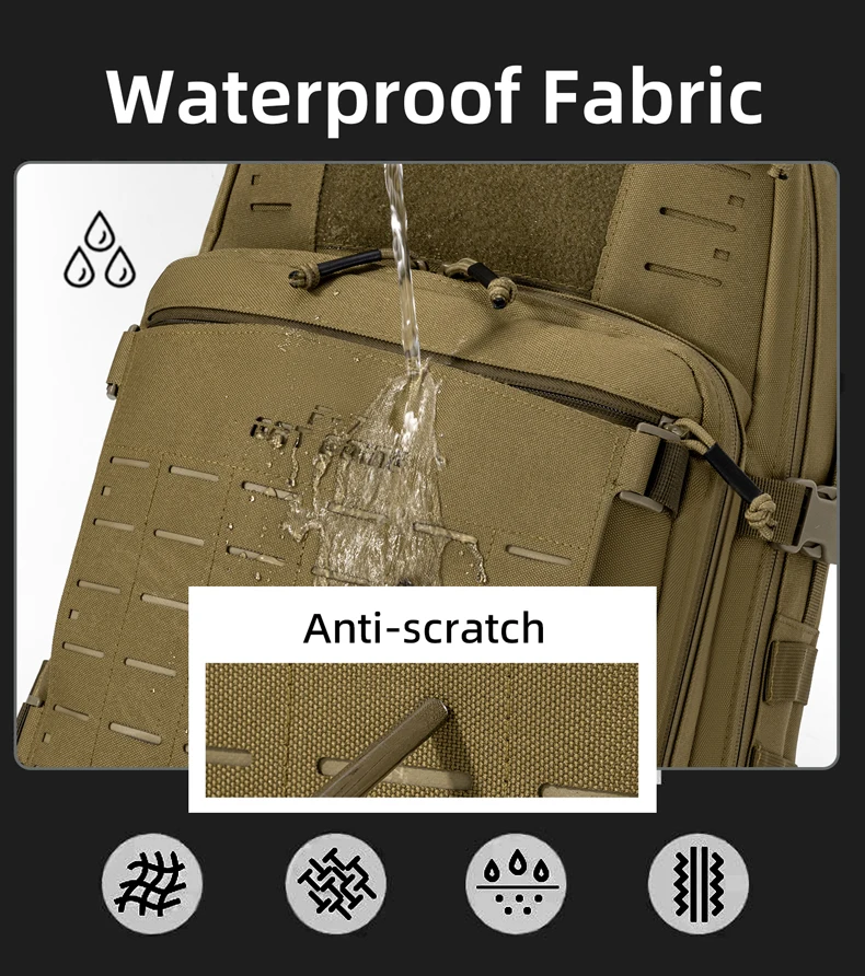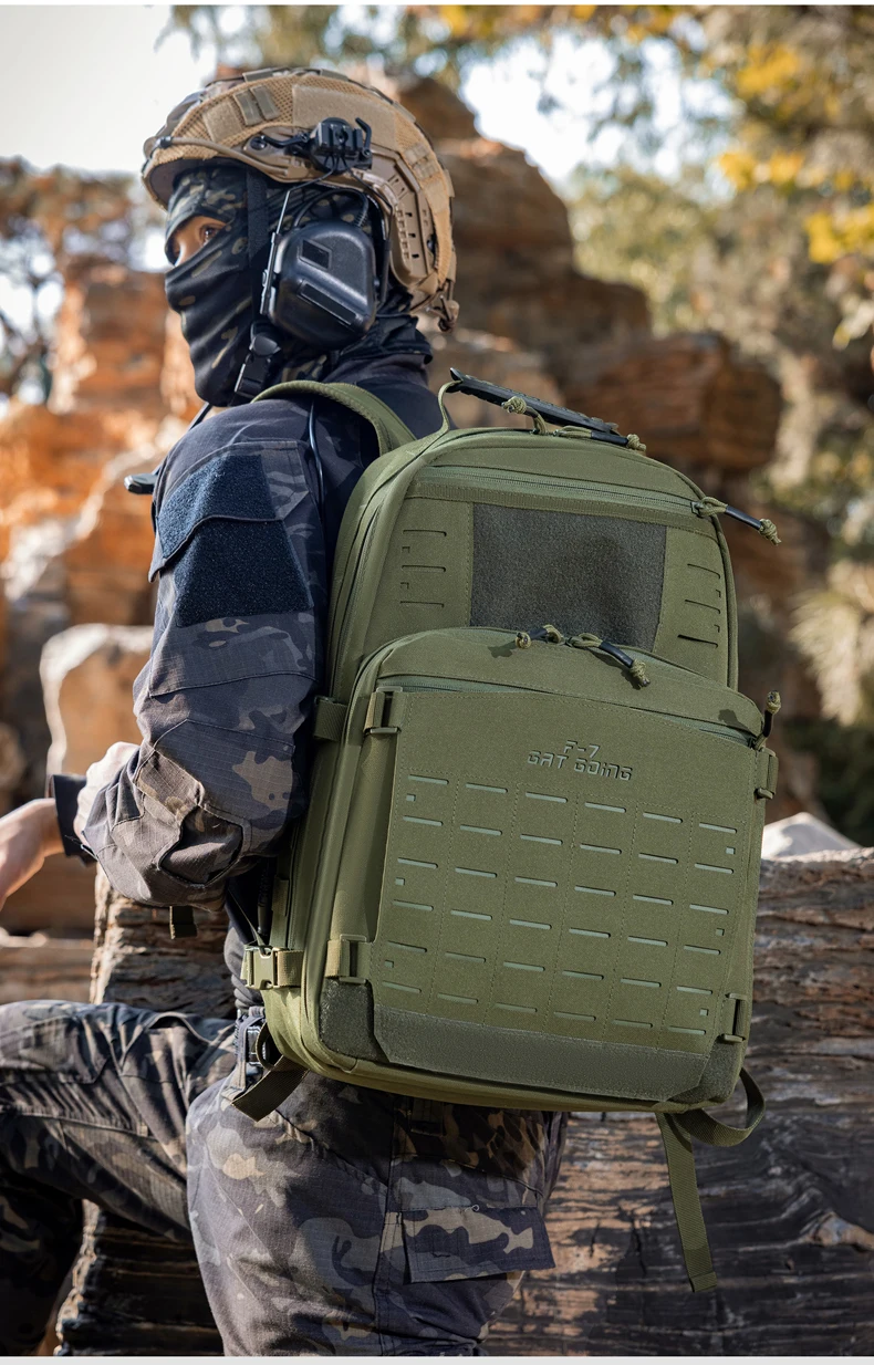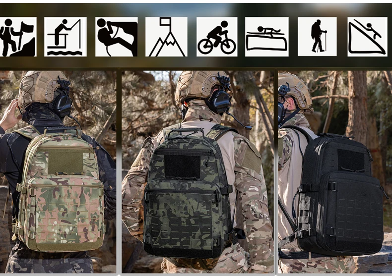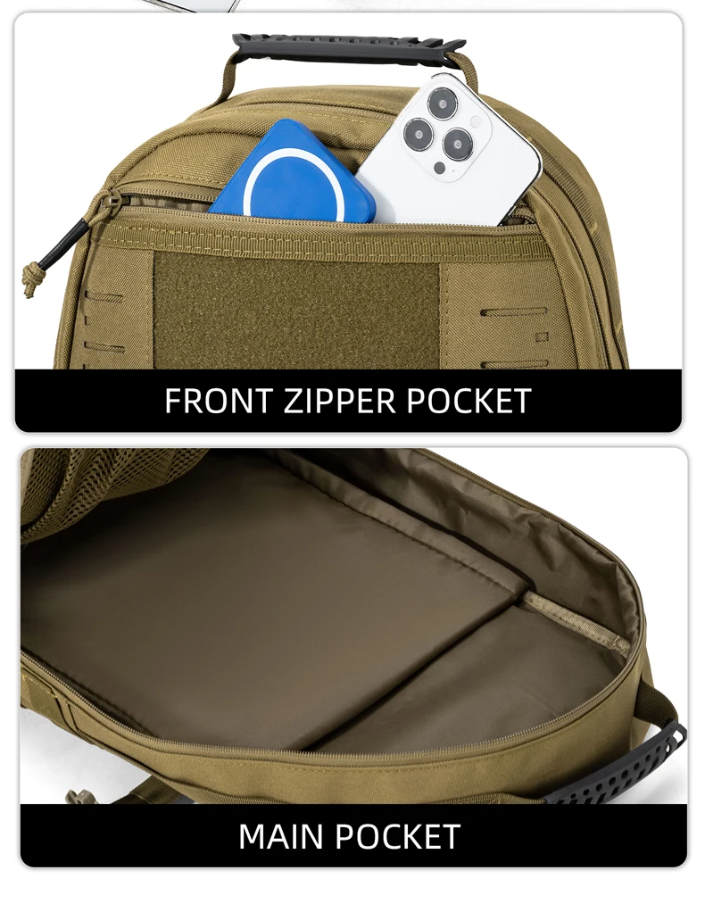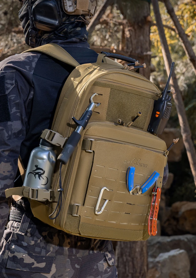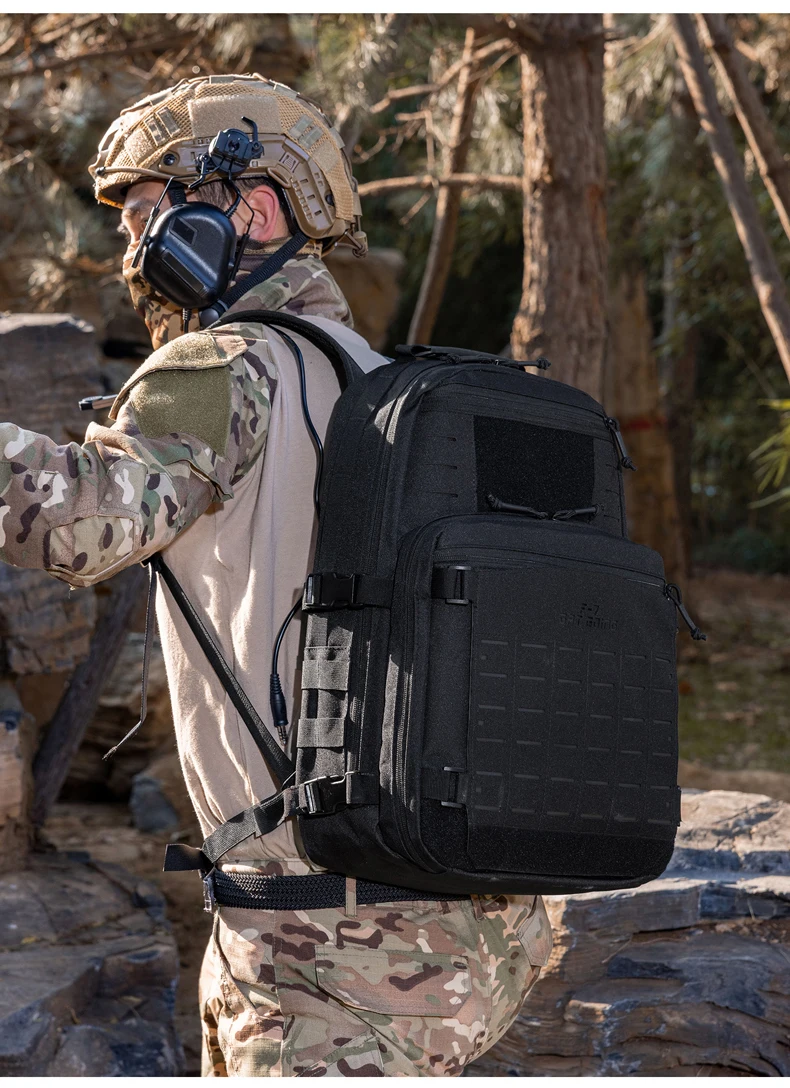 1.Equipada con un sistema Molle táctico, esta mochila permite una fácil fijación de equipo adicional.
