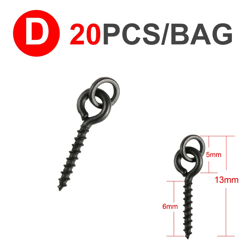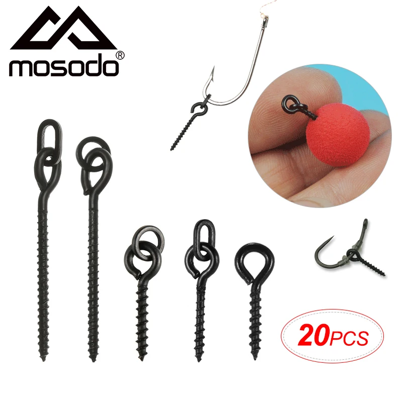 Mosodo 20 piezas Boilie tornillo clavija con anillo giratorio D-Rig Chod Rig Terminal aparejo cebo soporte tornillo carpa pesca accesorios aparejo hacer aparejos