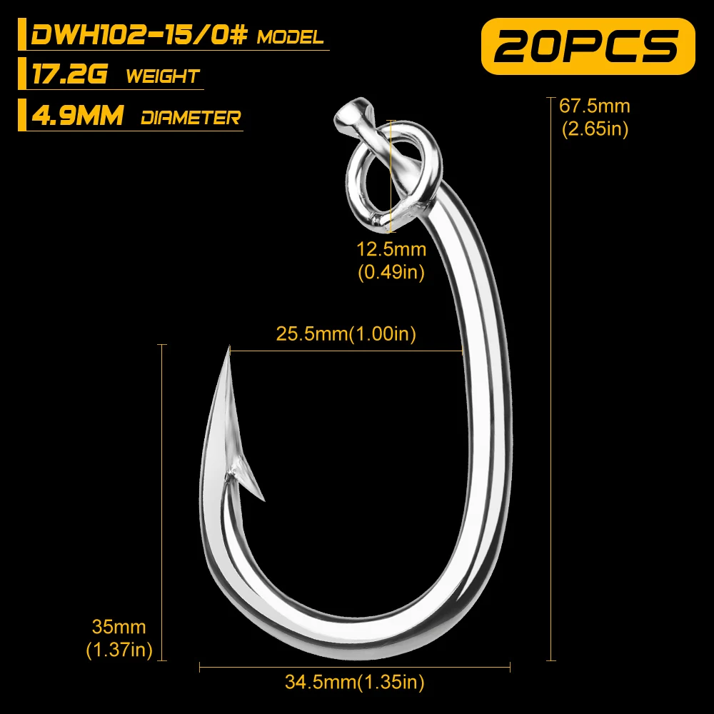 Anzuelo de pesca de agua salada marca SUNLURE de 20 piezas, anzuelo de atún 10/0 #-16/0 #, modelo de anzuelo de acero inoxidable hecho en Taiwán