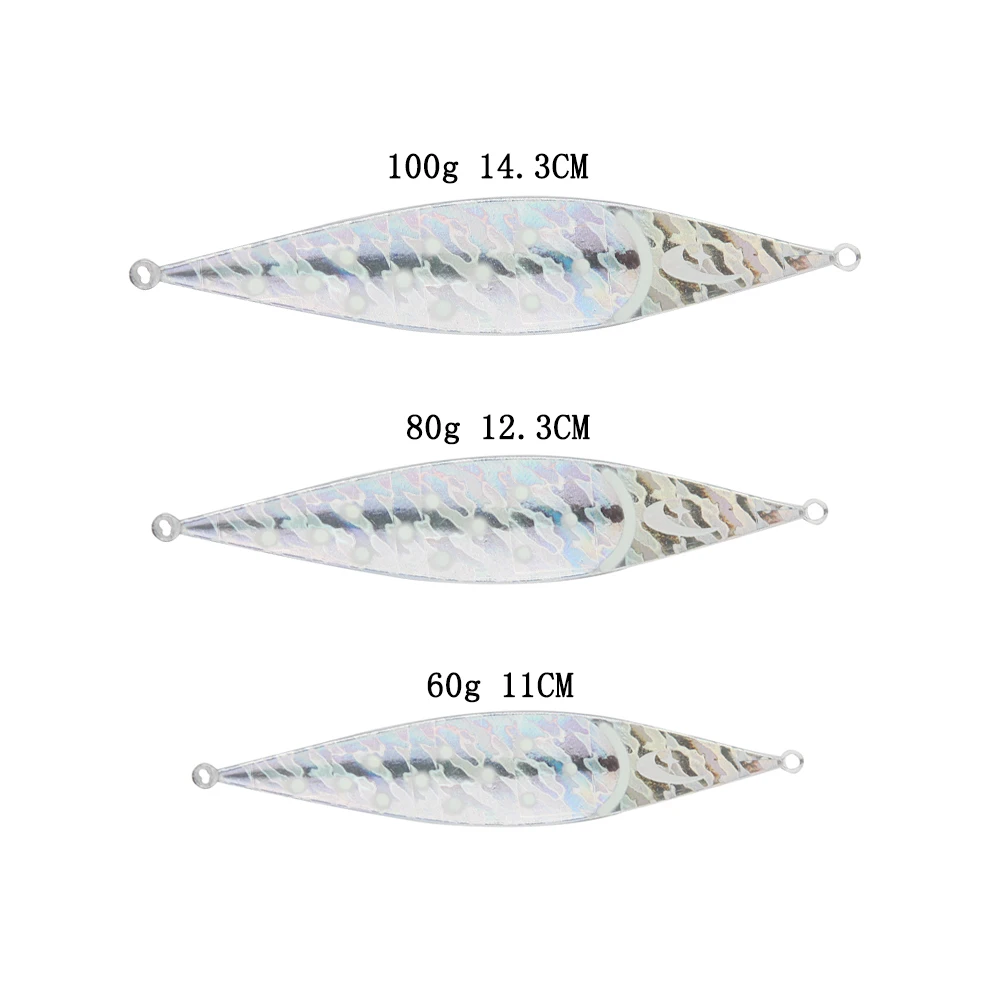 60g/80g/100g luminoso playa lanzamiento largo tiro lejano barco marino lanzamiento lento metal plantilla cebo pesca señuelo brillante