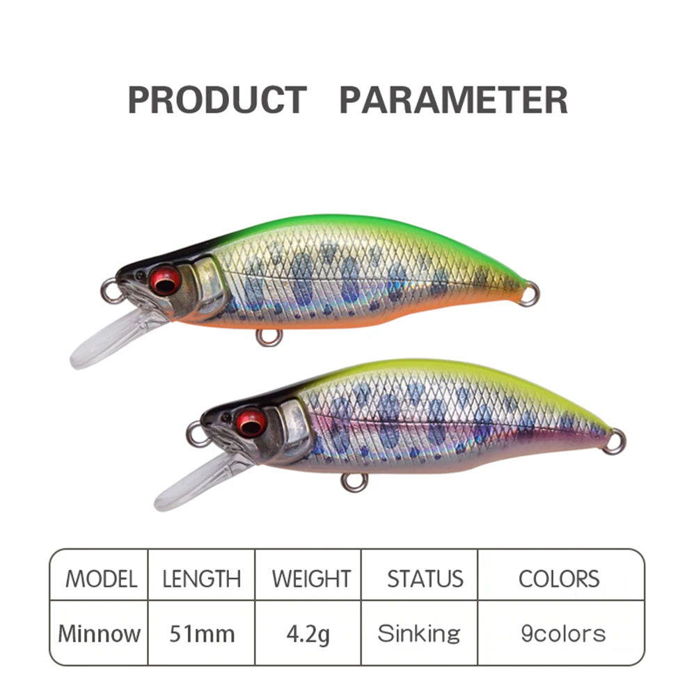5,1 cm 4,2G señuelo de pesca Mini Minnow Wobbler hundimiento rápido curricán Jerkbait Swimbait cebo duro Artificial señuelo de corriente cebo de trucha