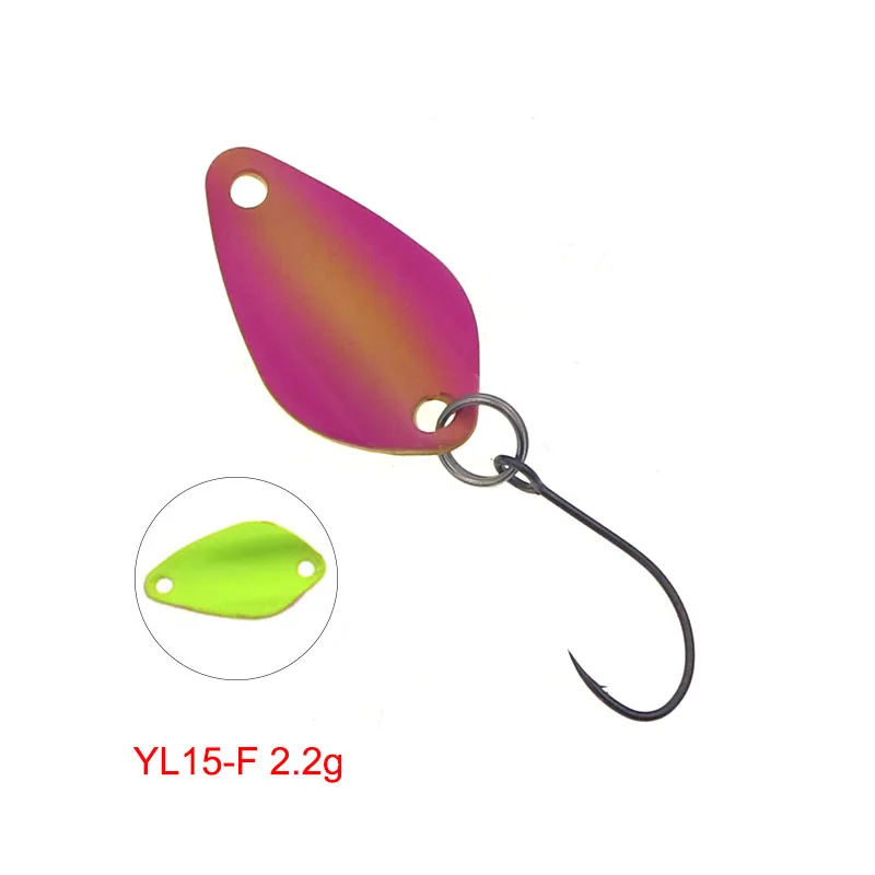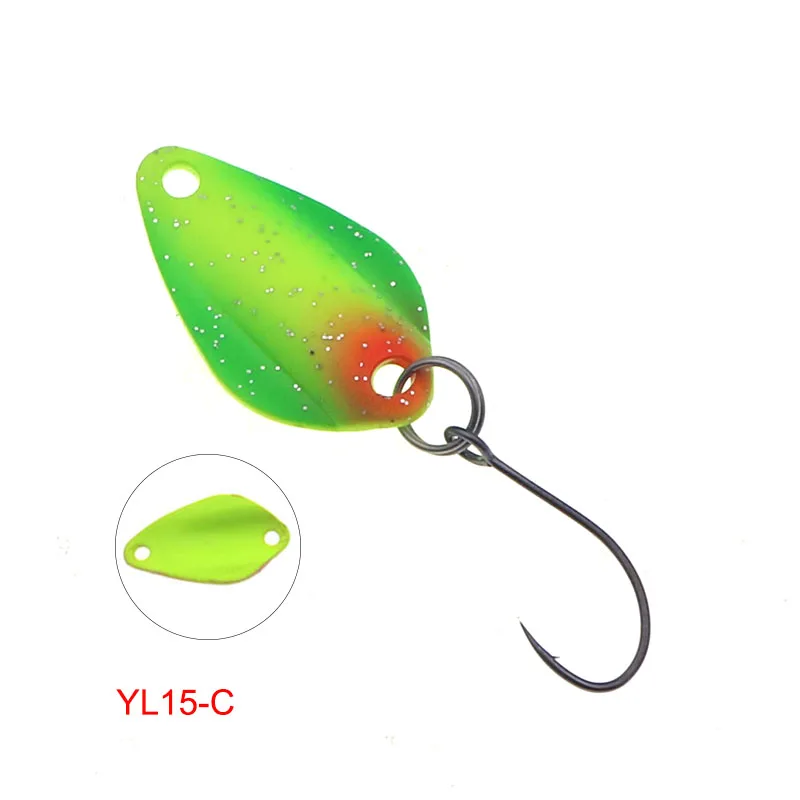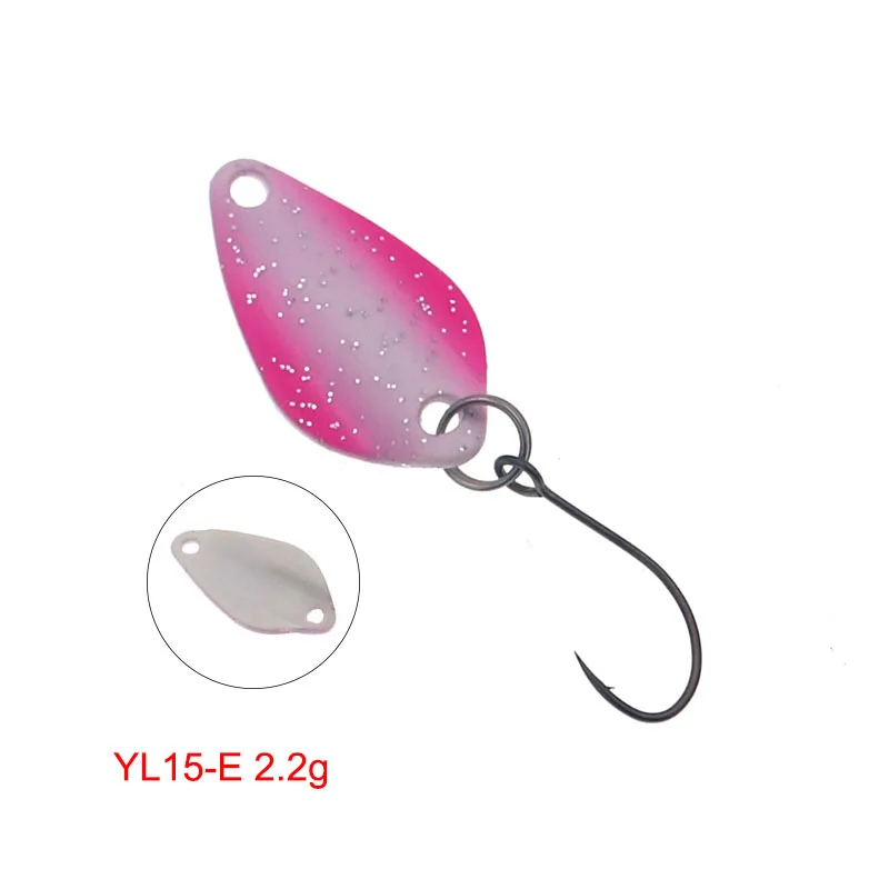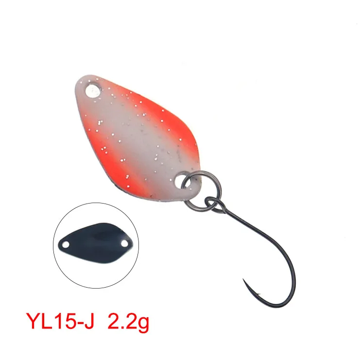 Tipo: Cebo artificialNombre del producto: señuelo de cucharaArtículo No:YL15Longitud: 2,6 cmPeso: 2,2GGancho: 6 # gancho único