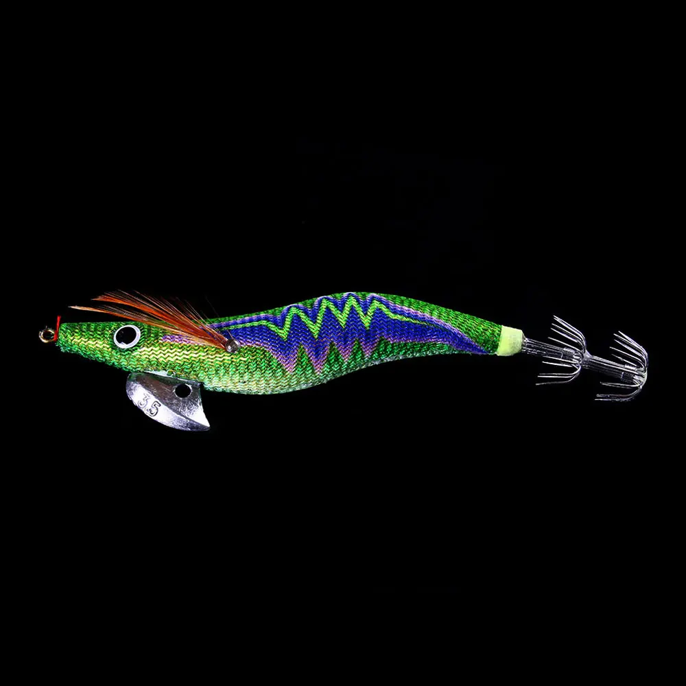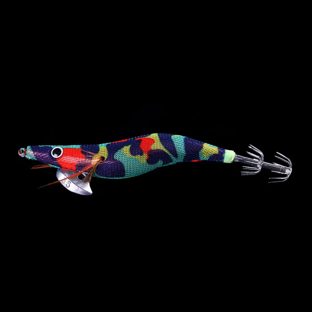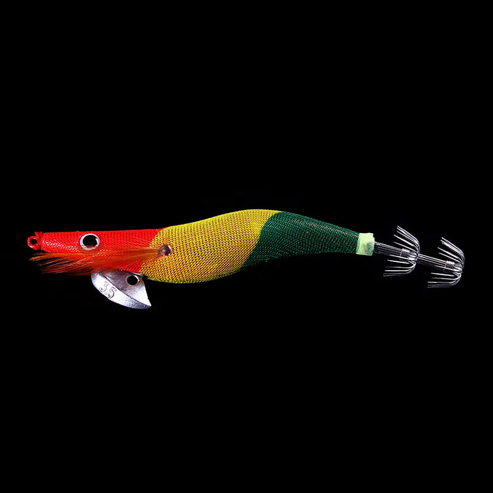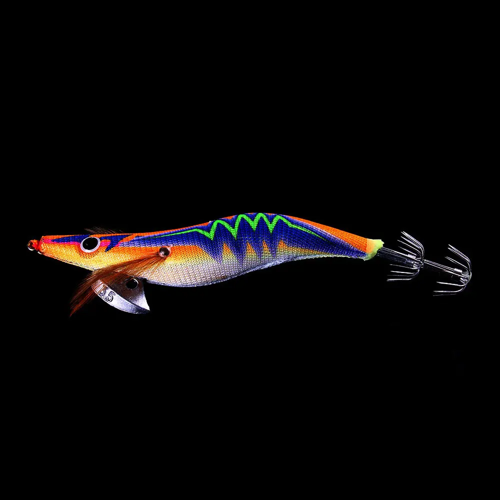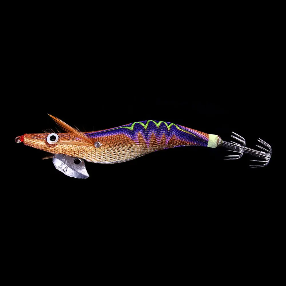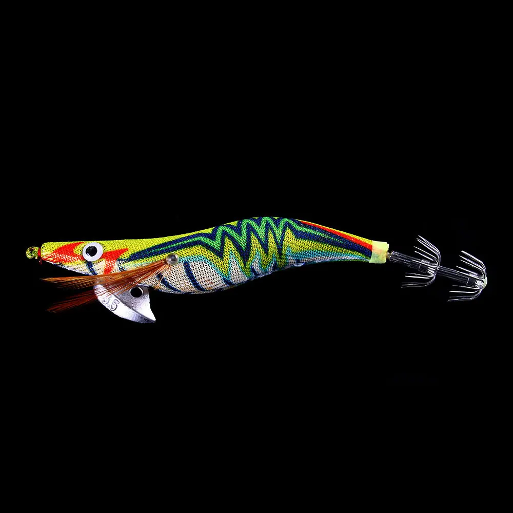 1 señuelo de pesca de camarones de madera en caja 2.5# 3.0# 3.5# Platillo de plomo, calamar, ojos 3D, señuelos luminosos, pulpo, sepia, cebos para camarones